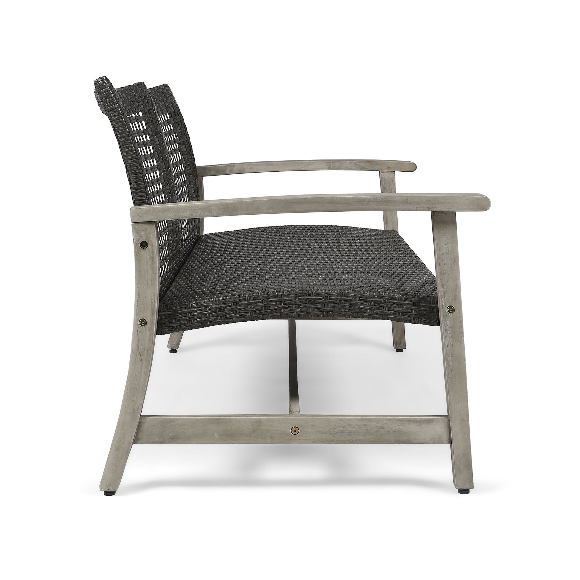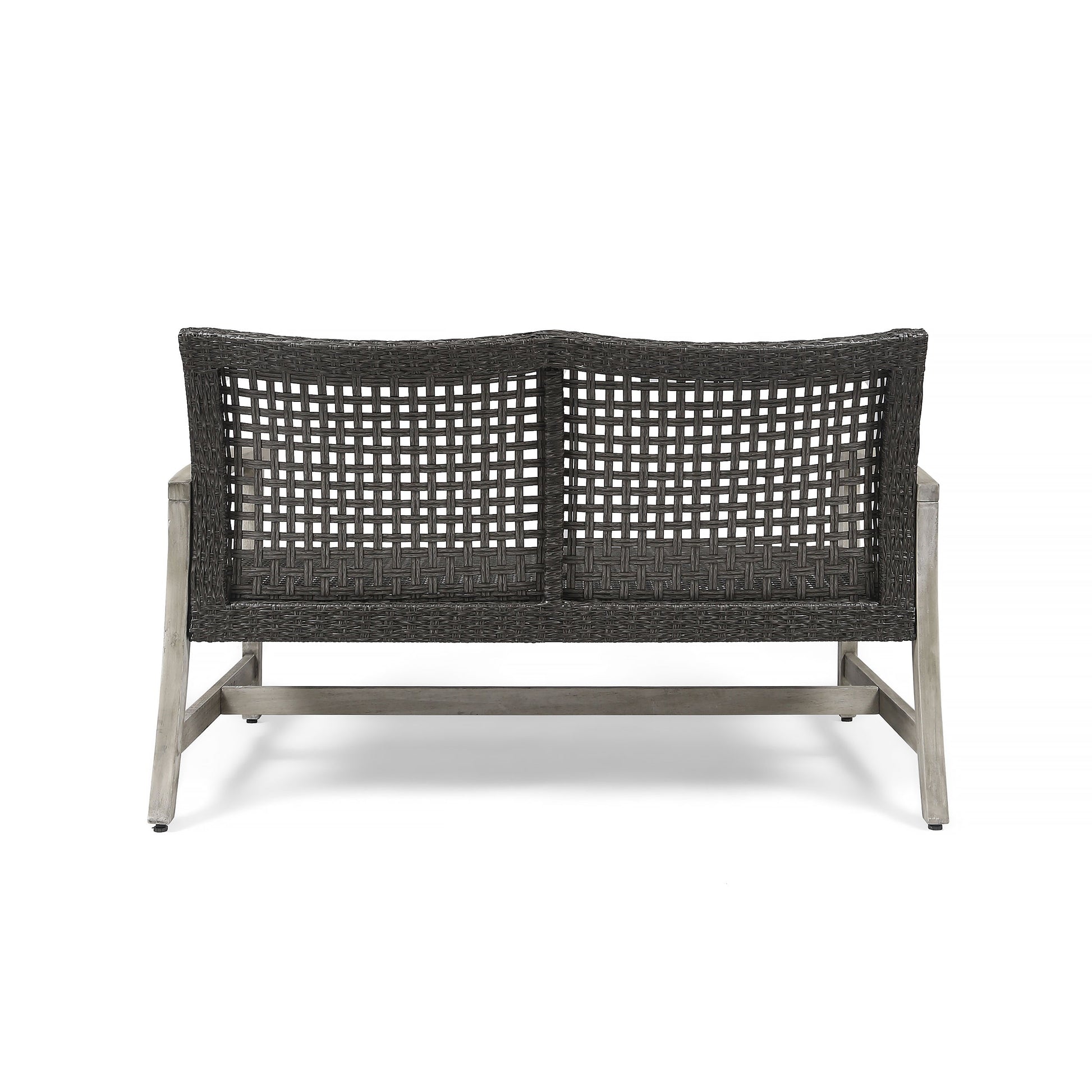 Hampton - Outdoor Wood And Wicker Loveseat - Gray