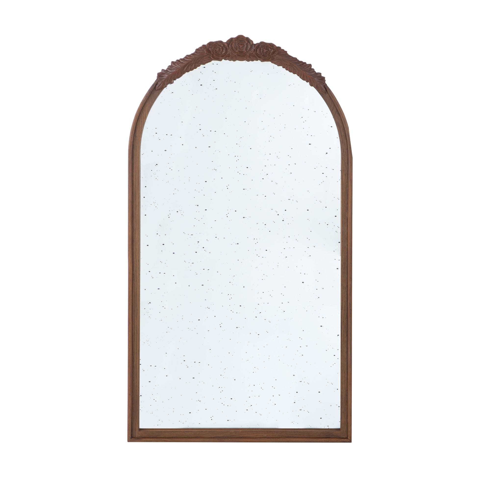 Hand Carved Rose Antique Mirror Frame, Wood Arch Mirror Wall Decor For Living Room, Bathroom, Entryway - Brown