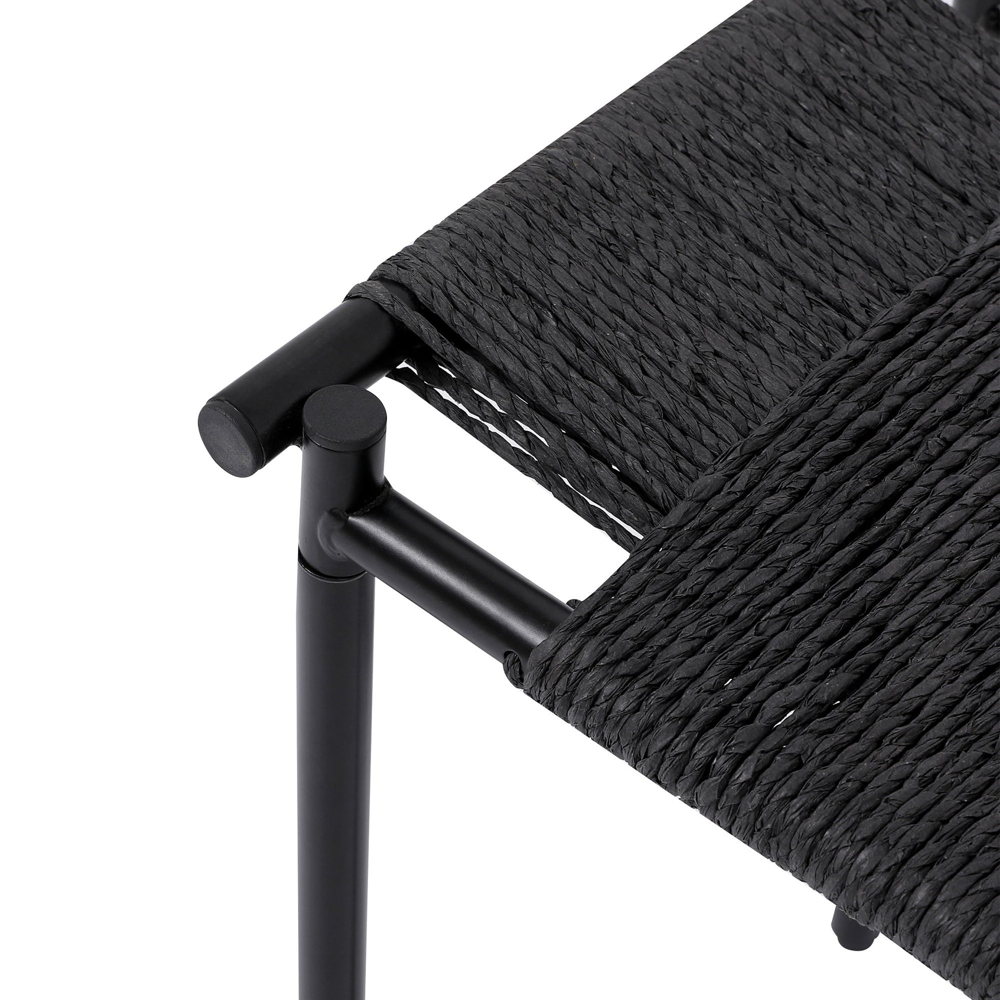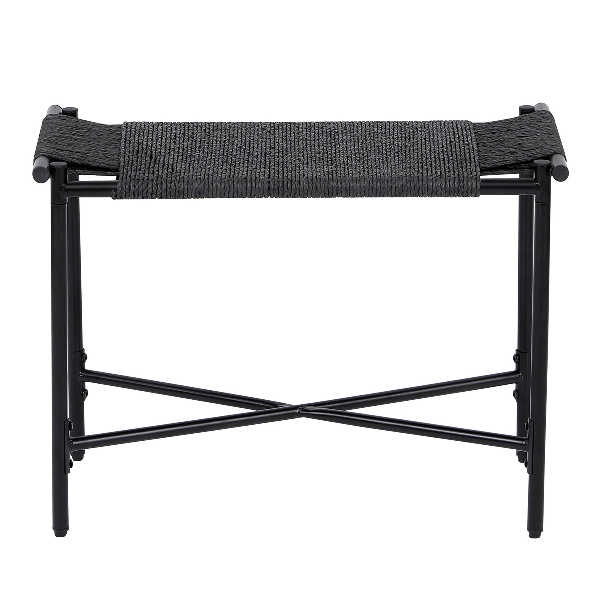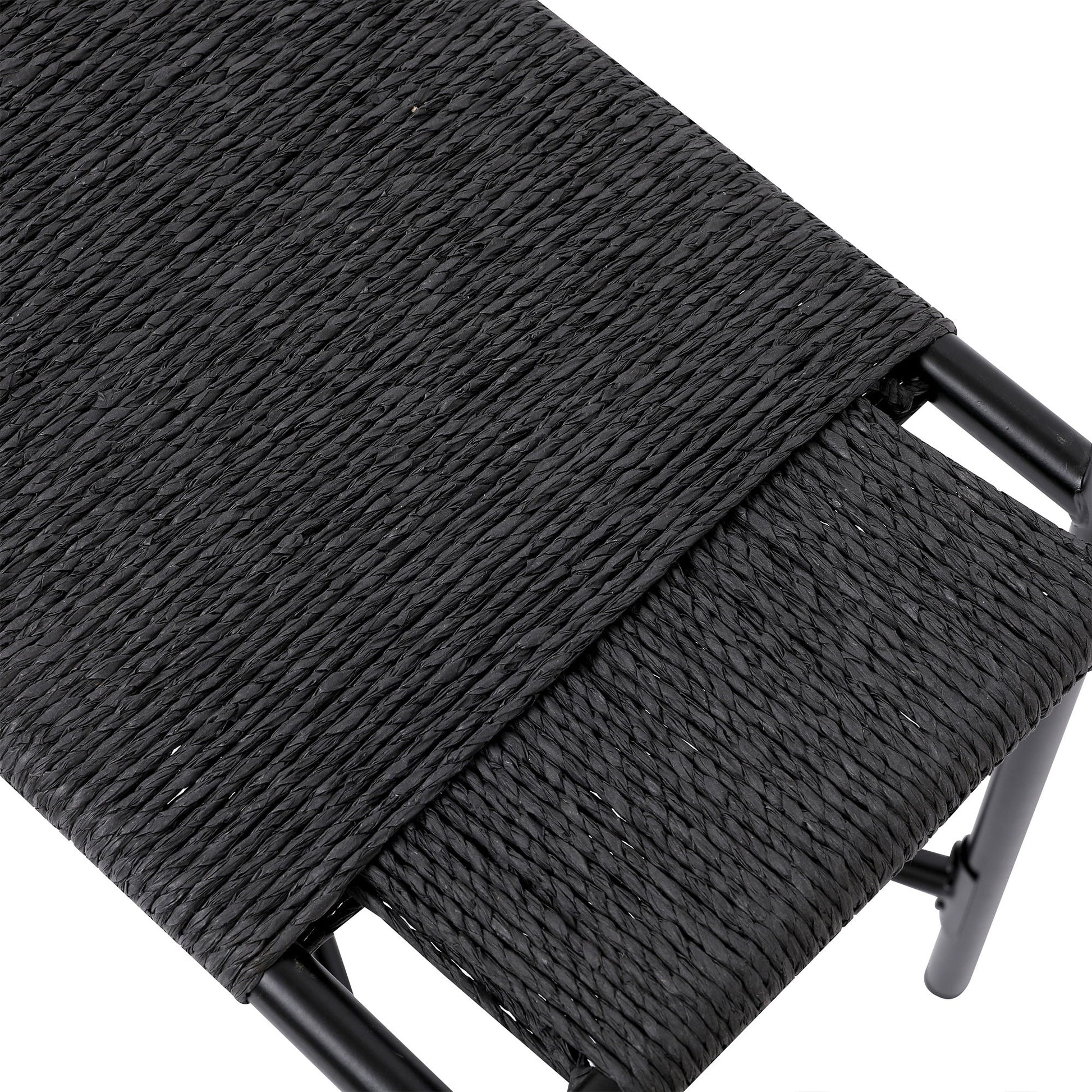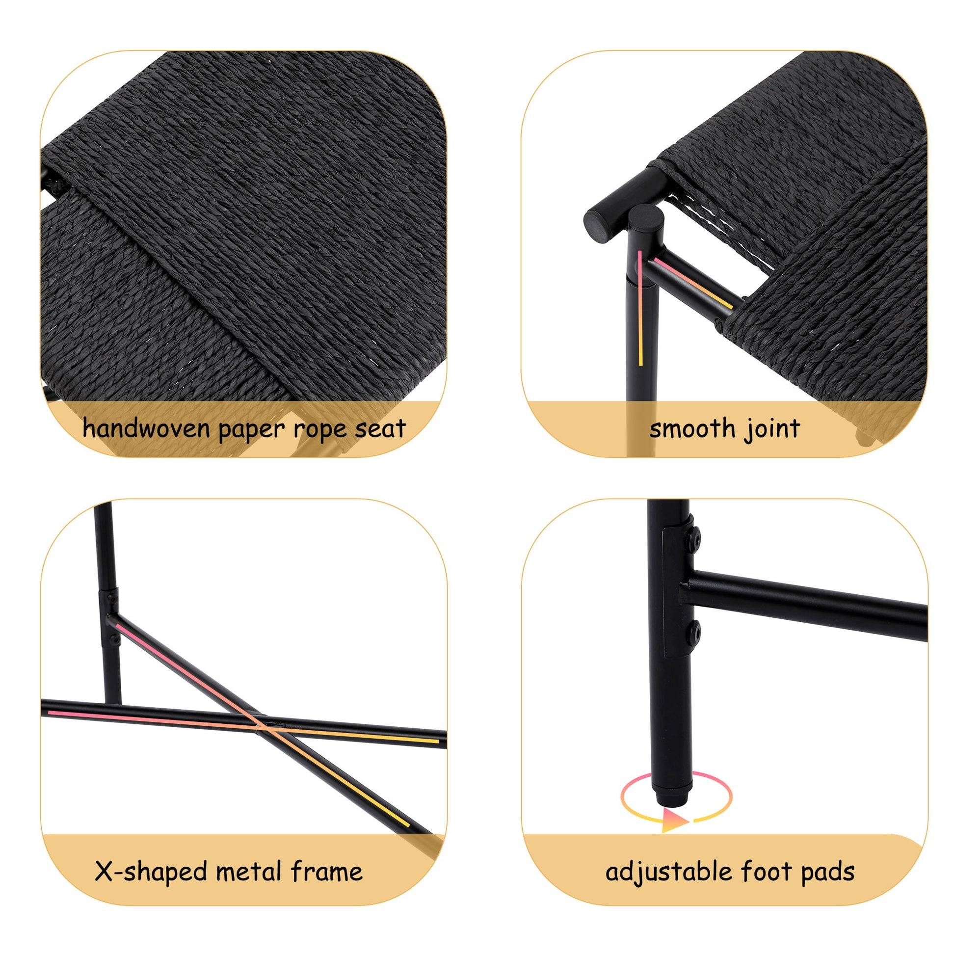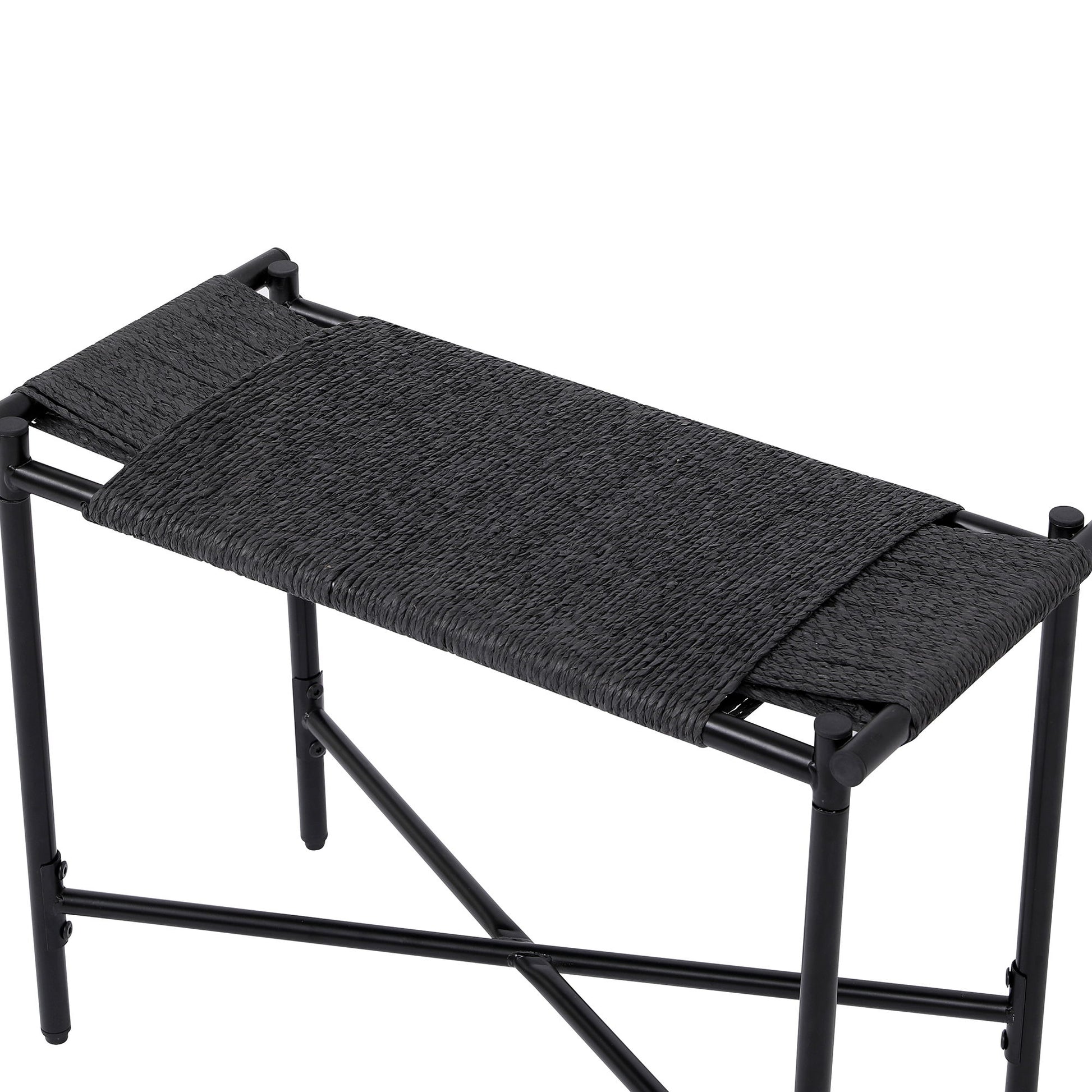 Handwoven Paper Rope Foot Rest Shoes Stools Ottomans For Entryway, Living Room, Bedroom & Office - Black