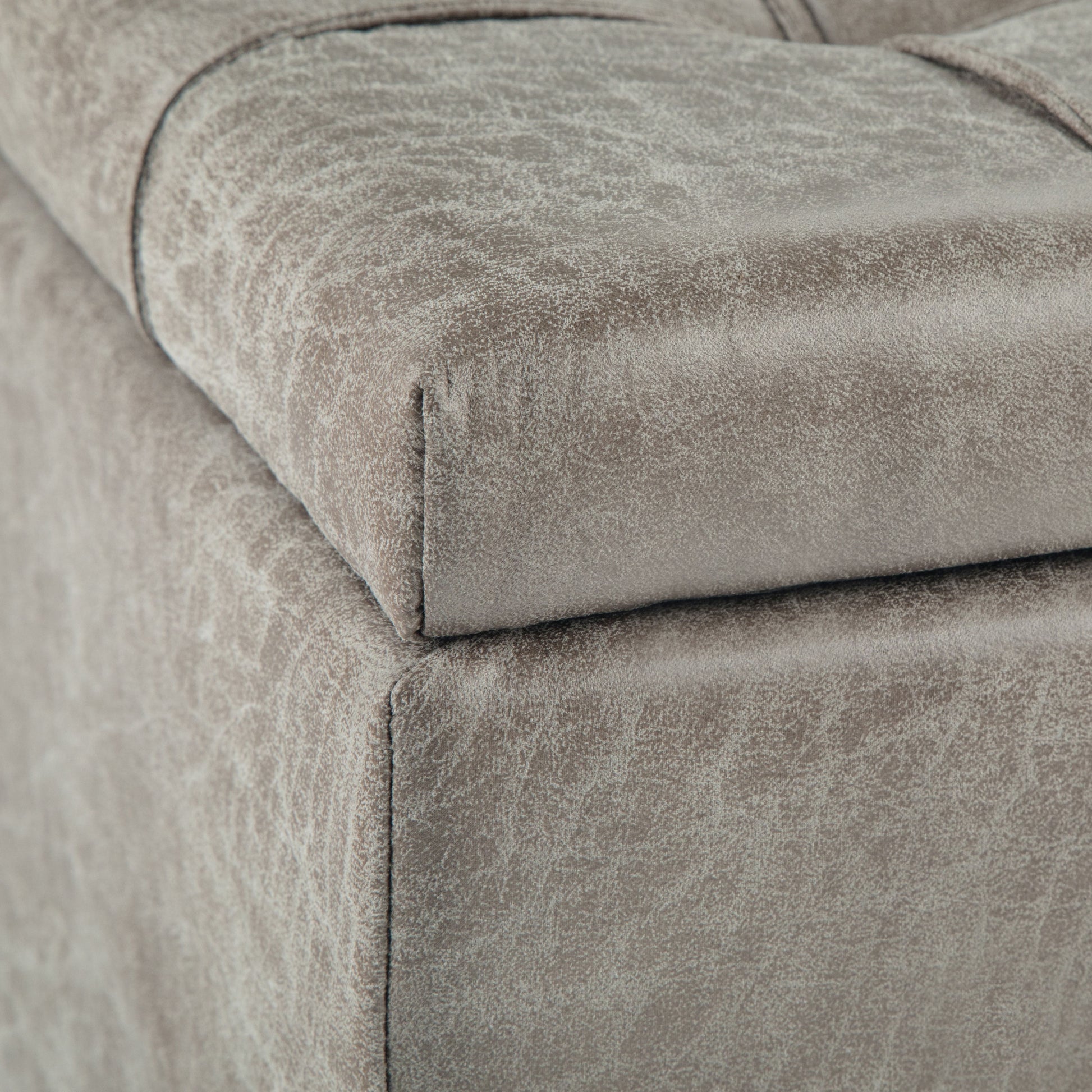- Upholstered with a durable Distressed Grey Taupe Vegan Faux Leather