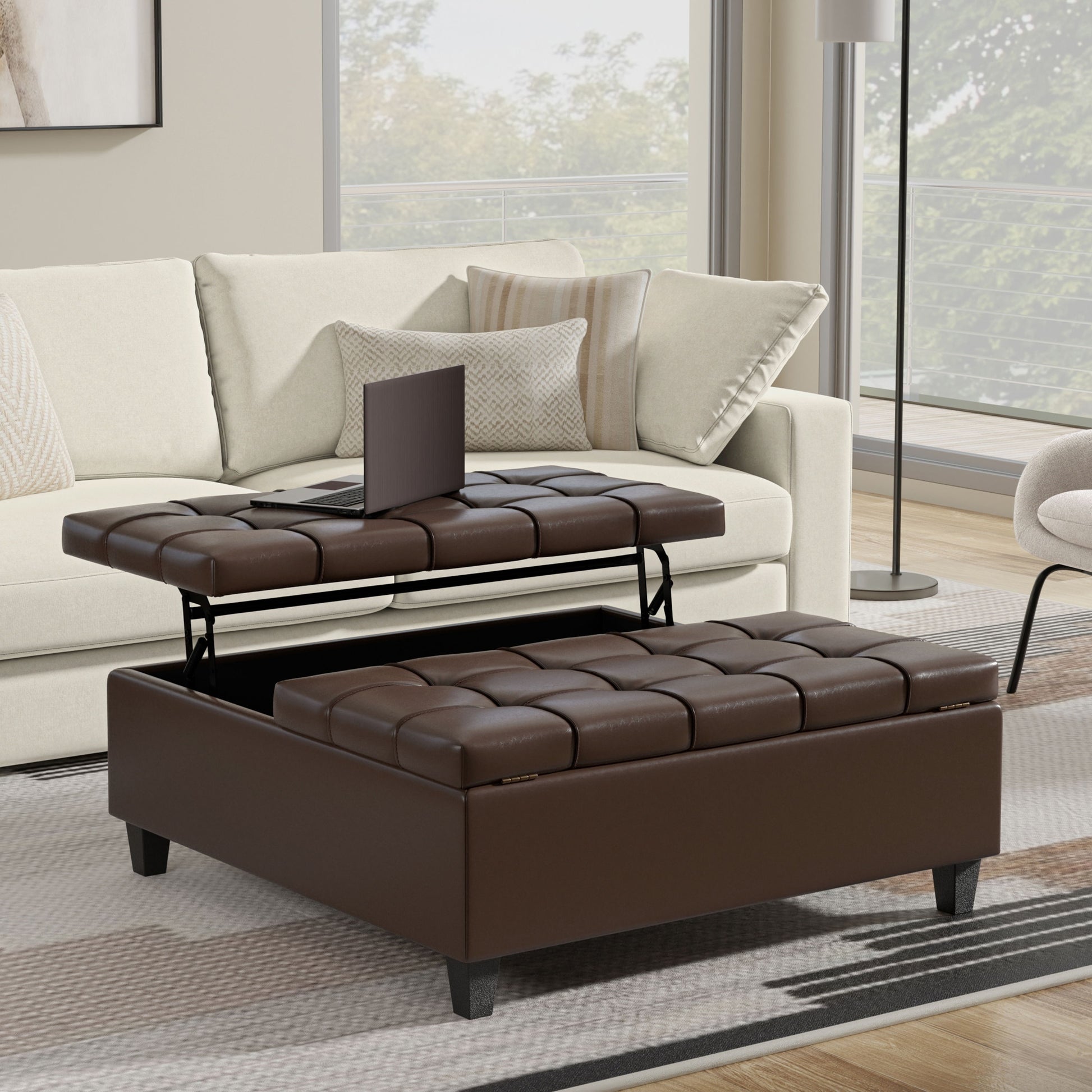 Harrison - Large Square Coffee Table Storage Ottoman - Brown