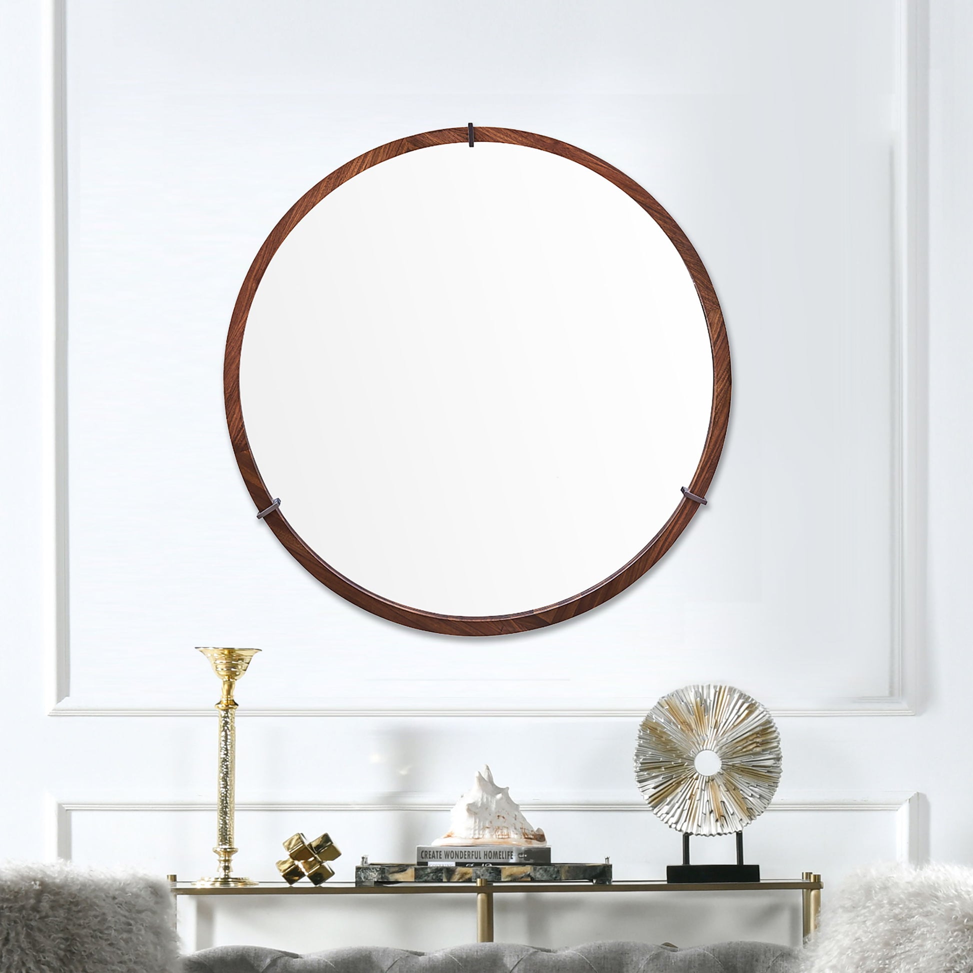 Hausen - Mid-Century Modern Round Accent Wall Mirror - Brown Walnut