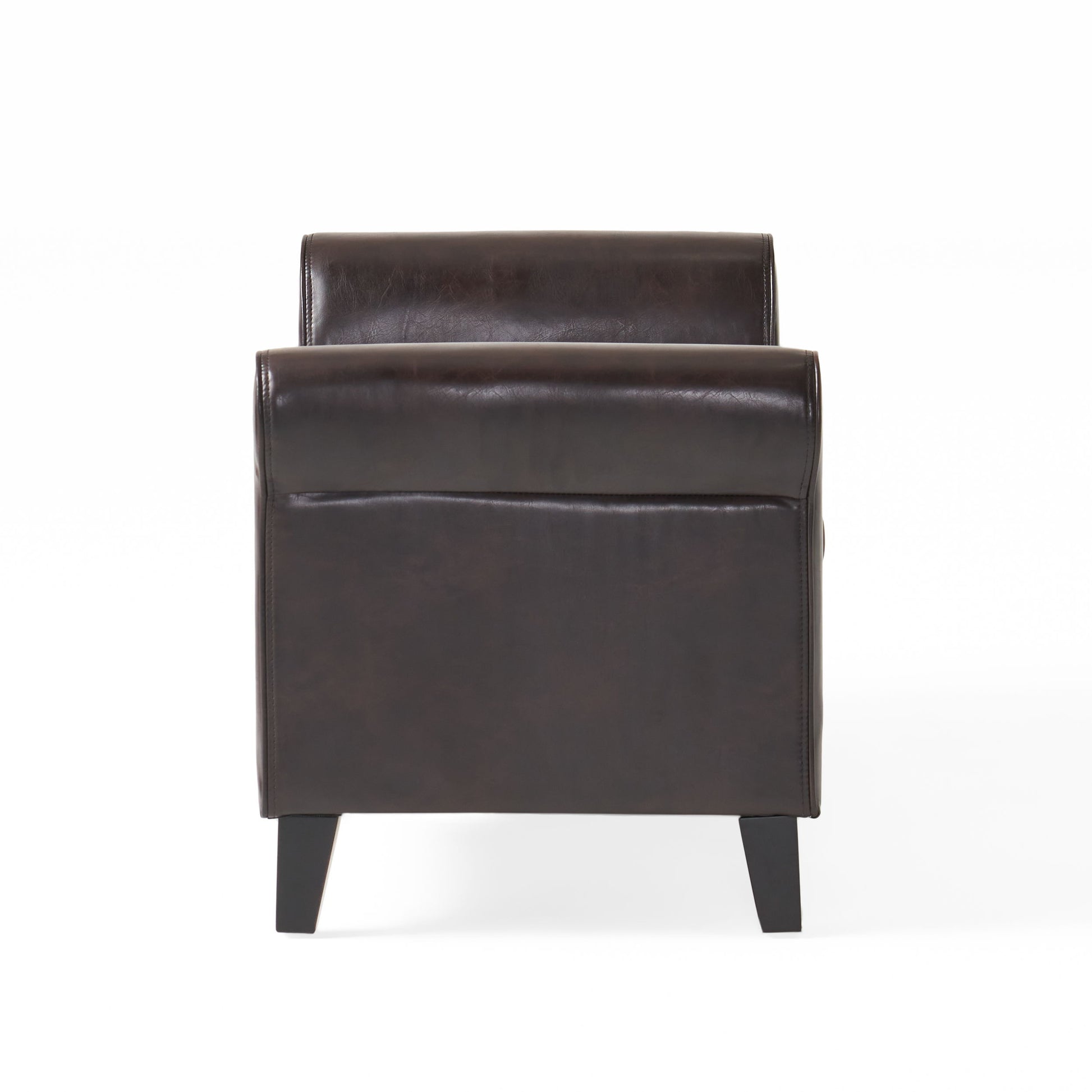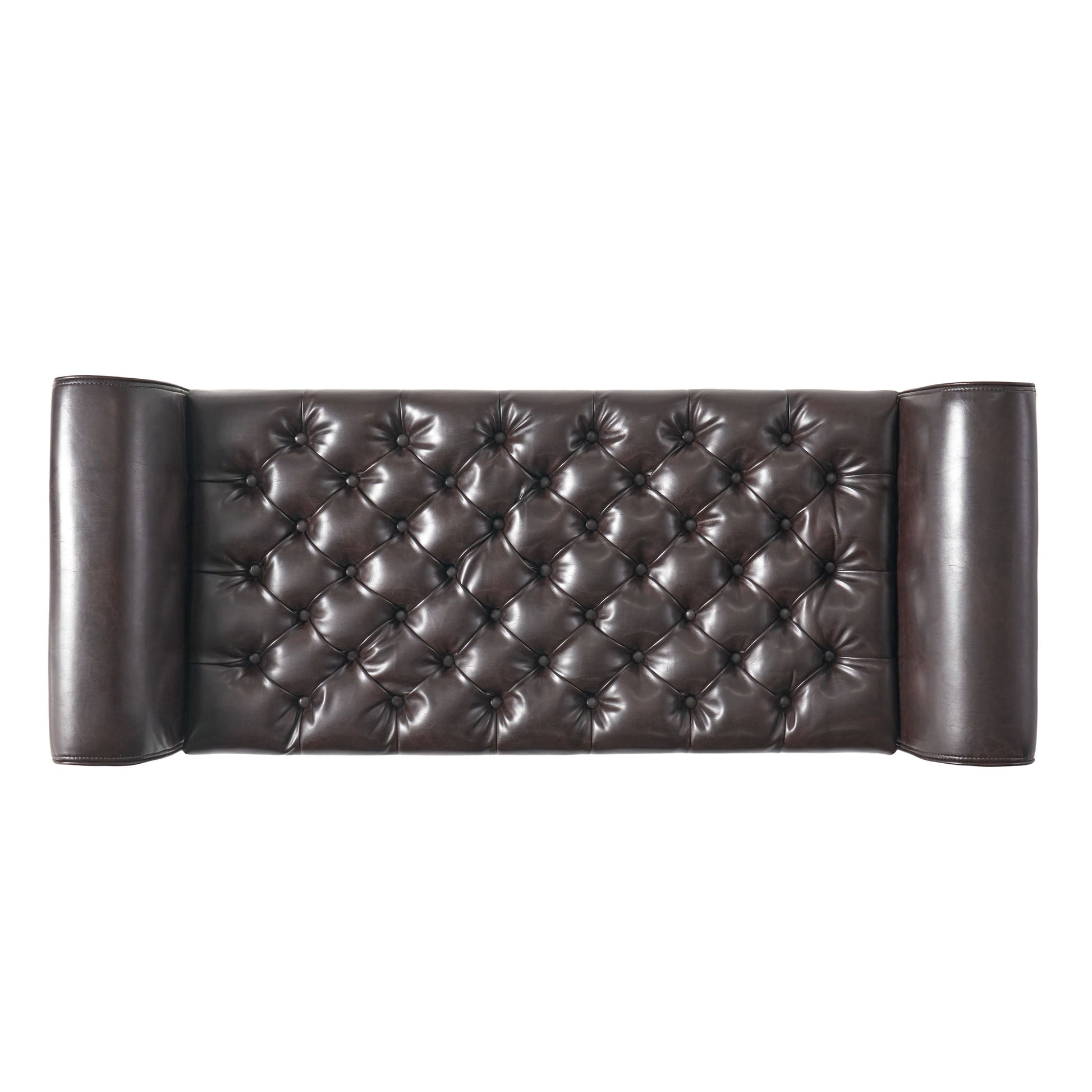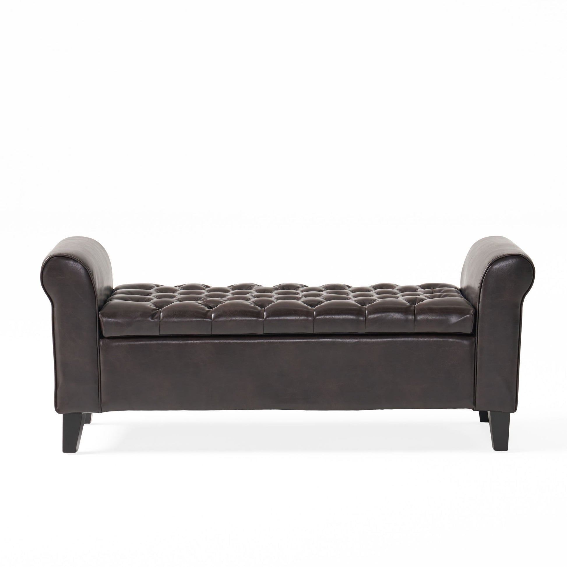 Hayes Contemporary Armed Storage Bench With Button Tufting - Brown