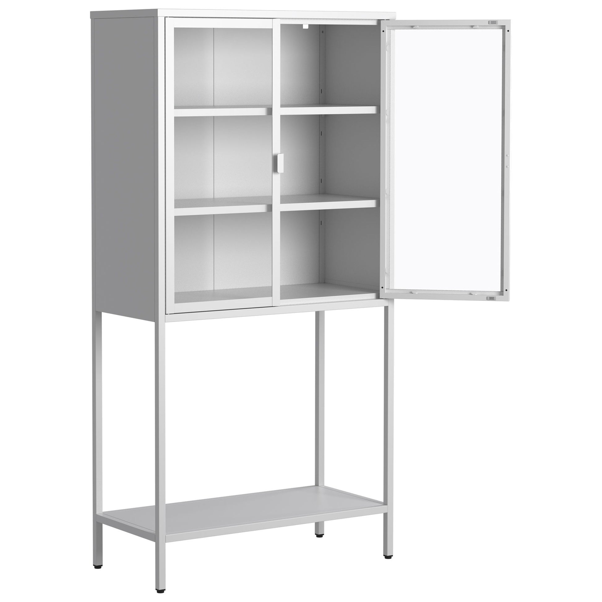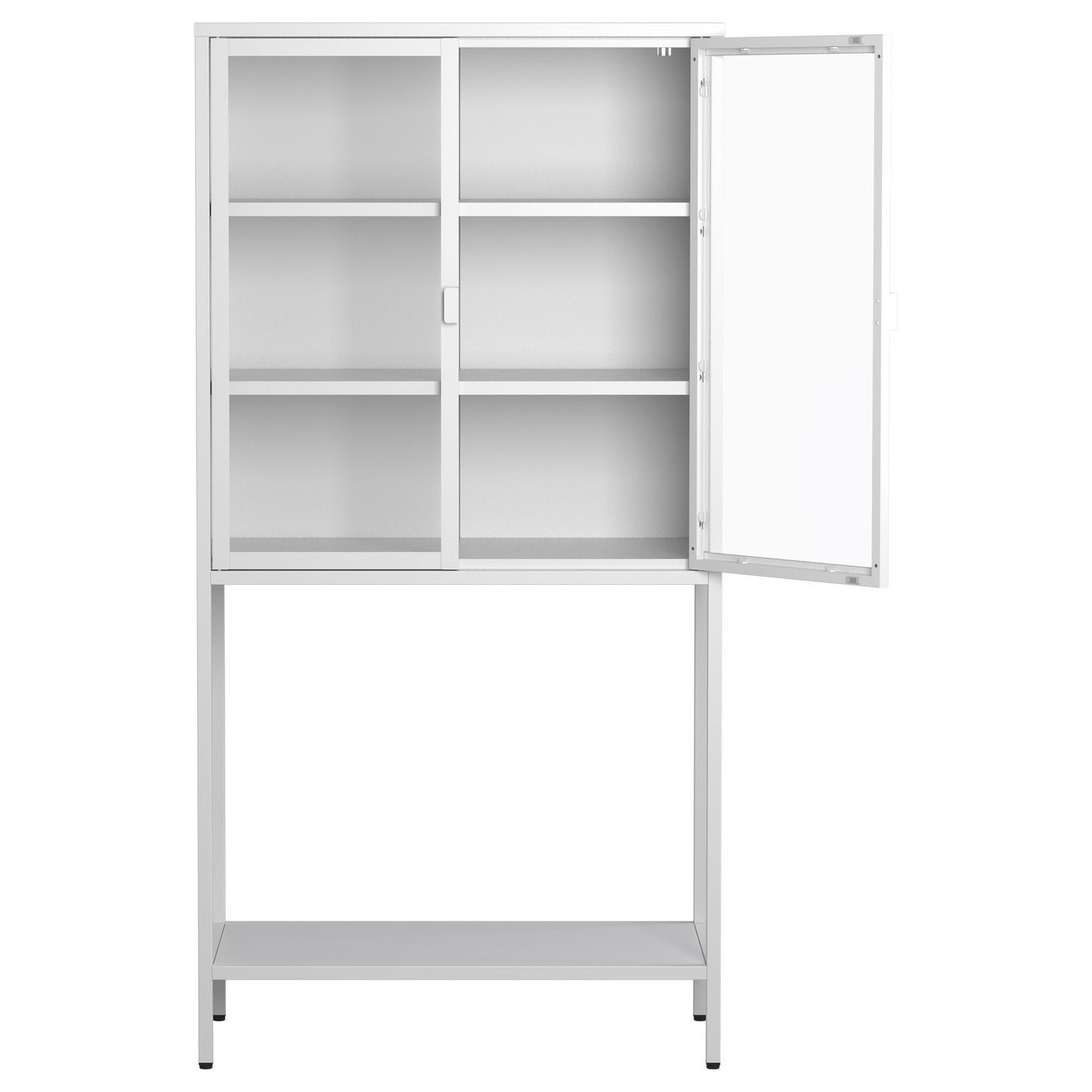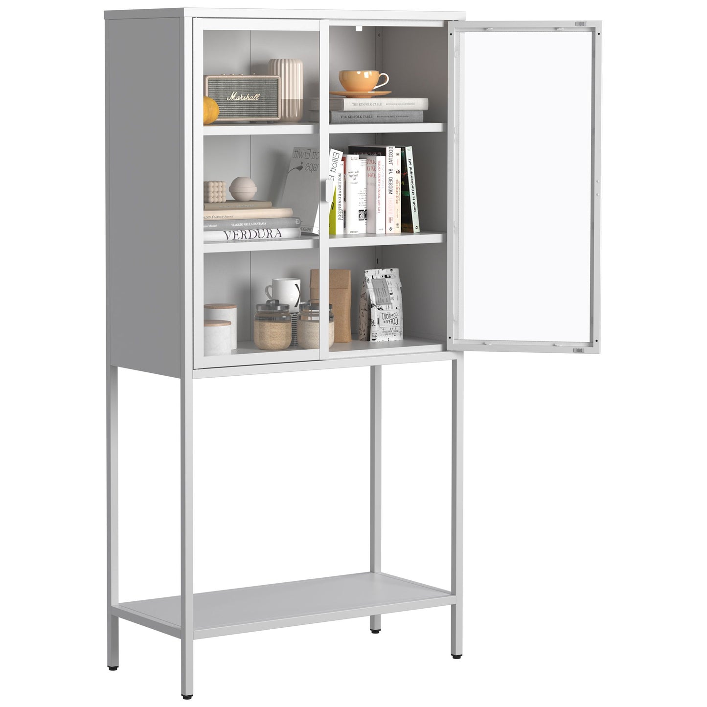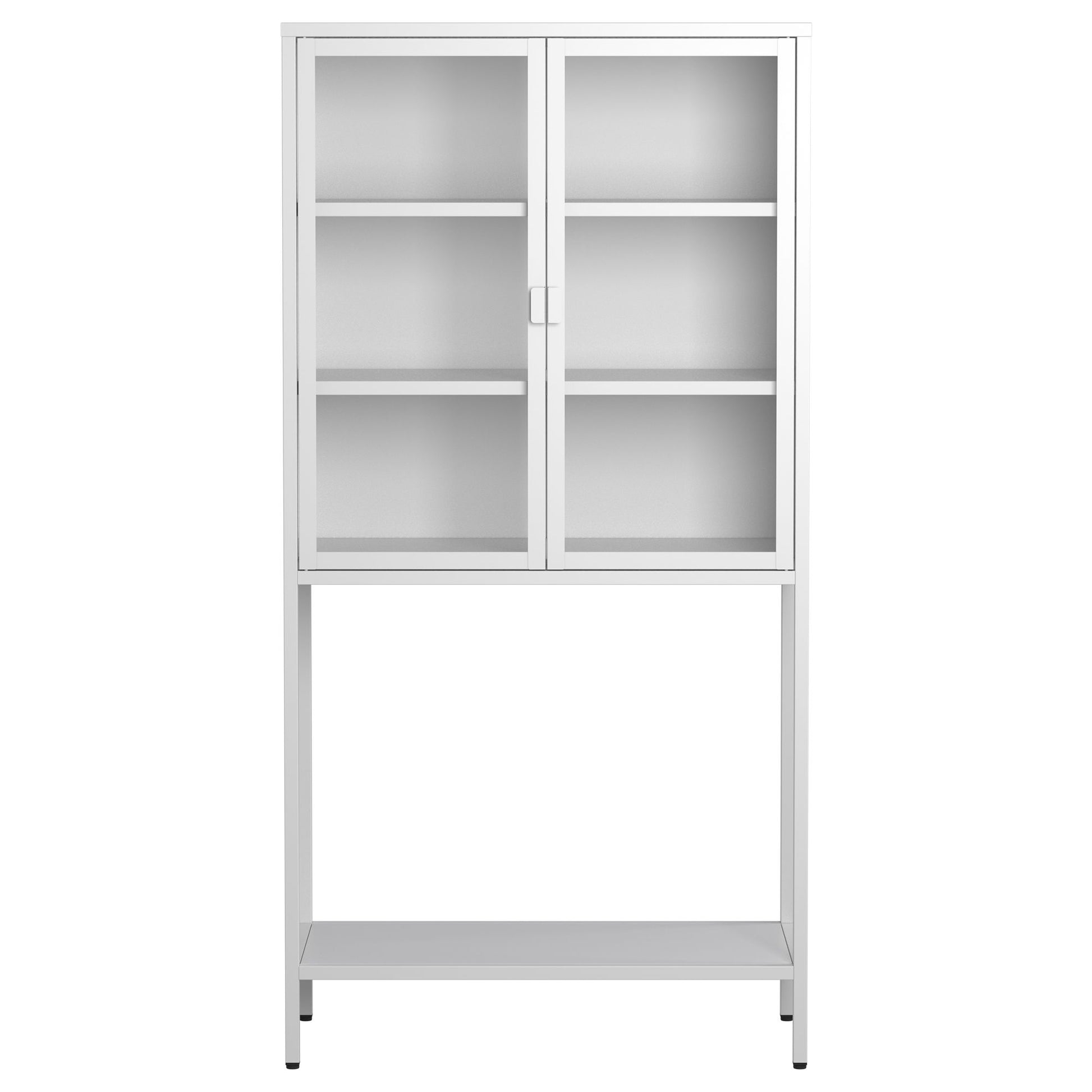 Heavy Duty Metal Storage Cabinet, Display Storage Cabinet With Glass Doors And 2 Adjustable Shelves, Tall Bookcase Modern Bookshelf Cabinet For Home Office, Living Room, Pantry - White