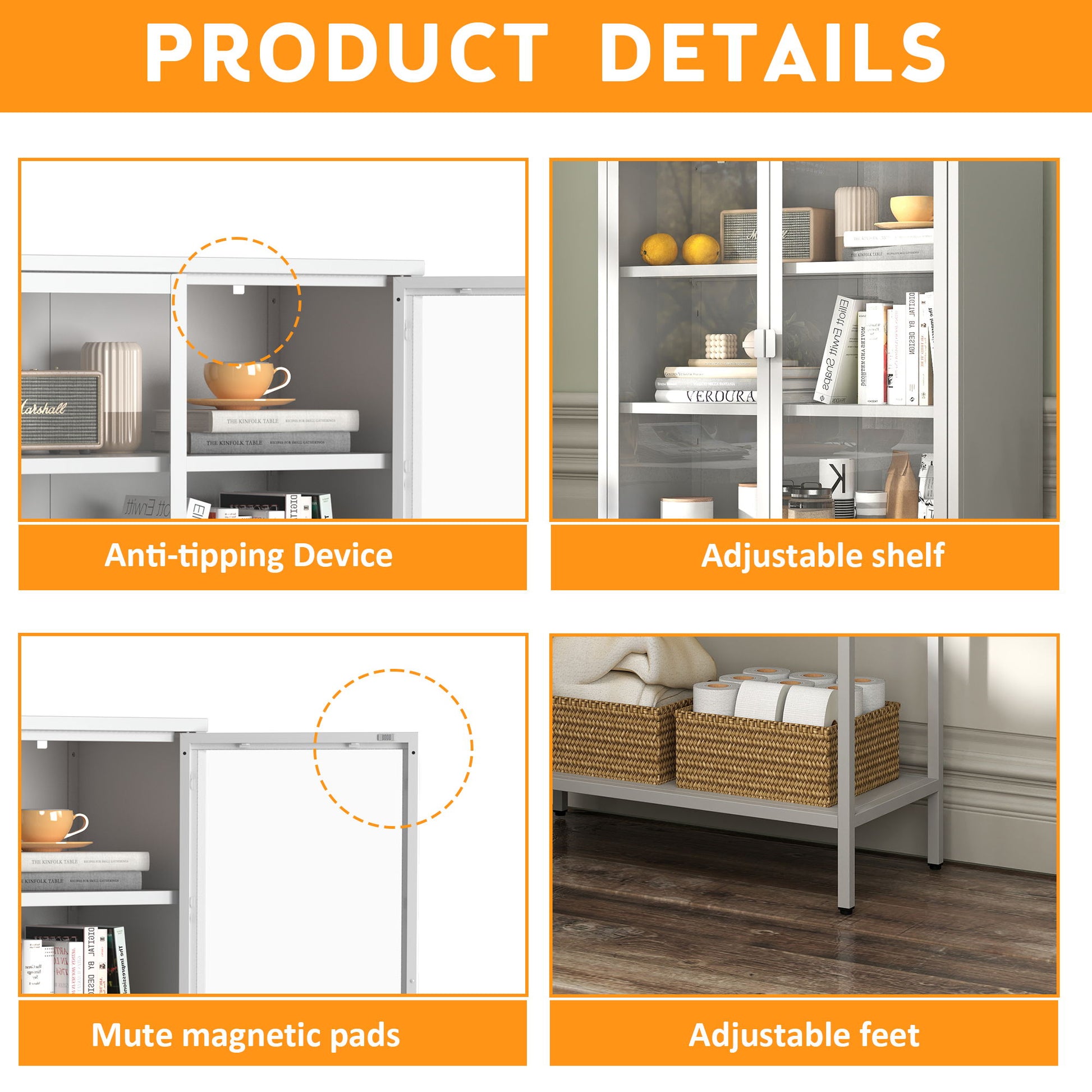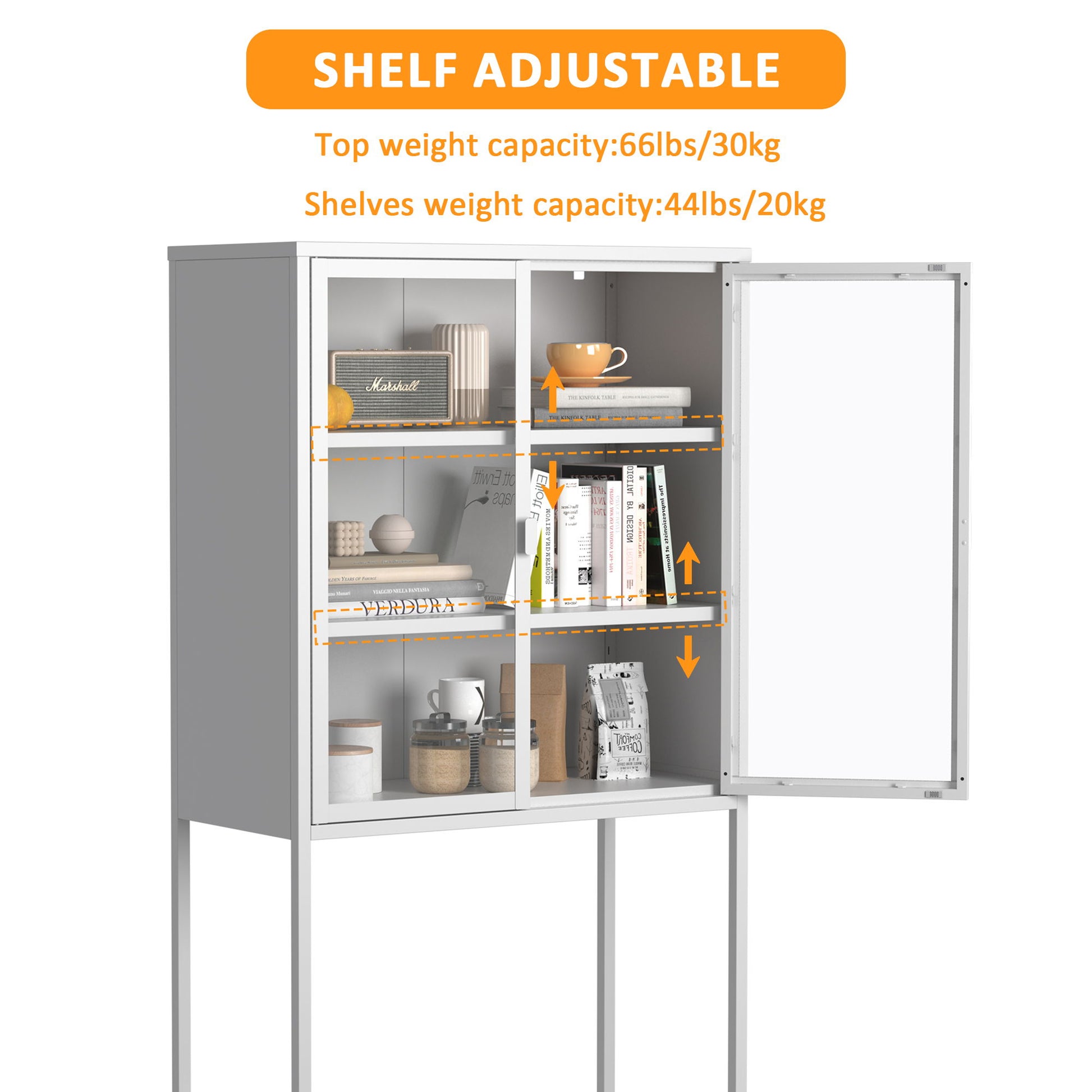 - Adjustable Shelves: Features two adjustable shelves for customizable storage space.