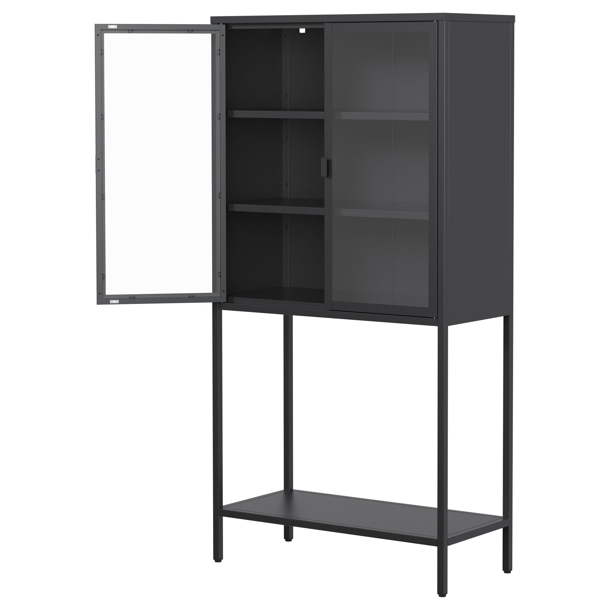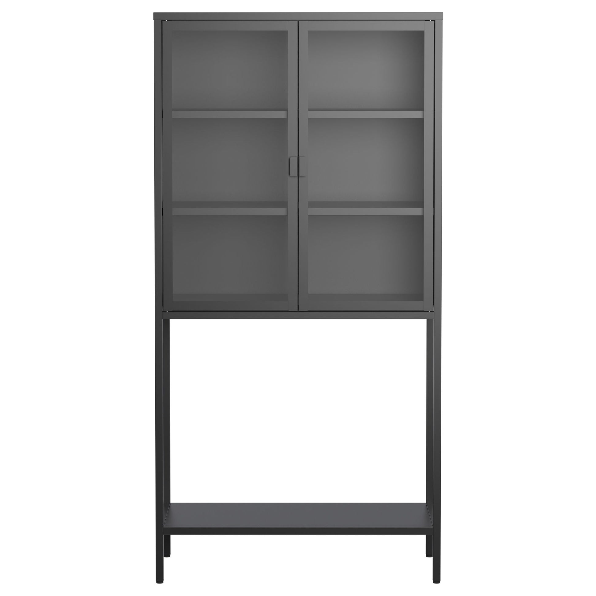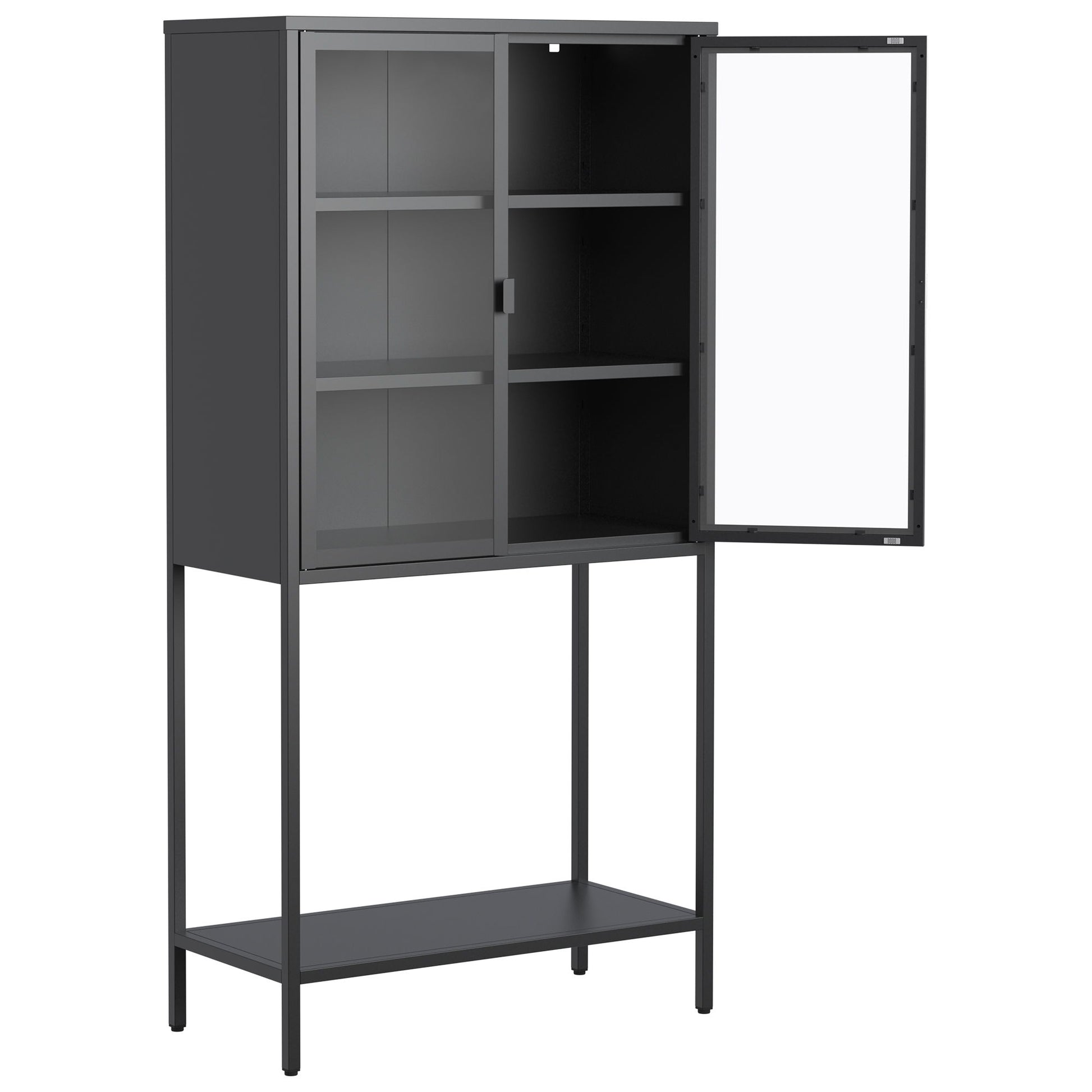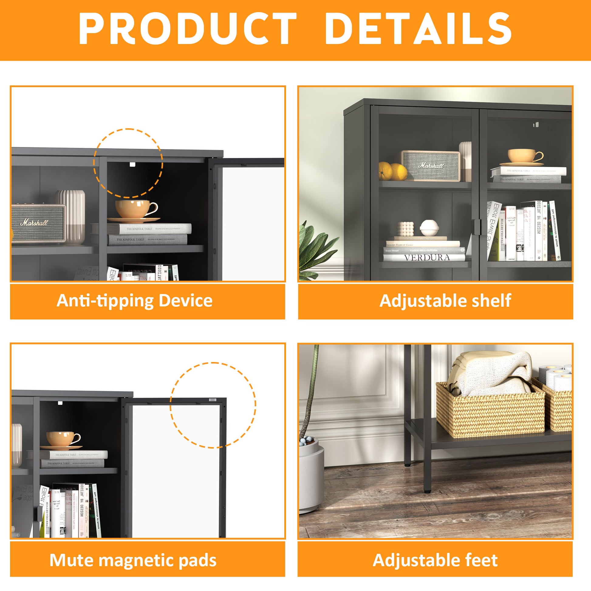 Heavy Duty Metal Storage Cabinet, Sideboards & Buffet, Display Storage Cabinet With Glass Doors And 2 Adjustable Shelves, Tall Bookcase Modern Bookshelf Cabinet For Home Office, Living Room - Black
