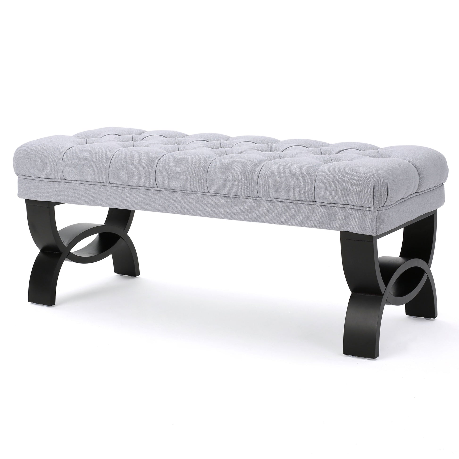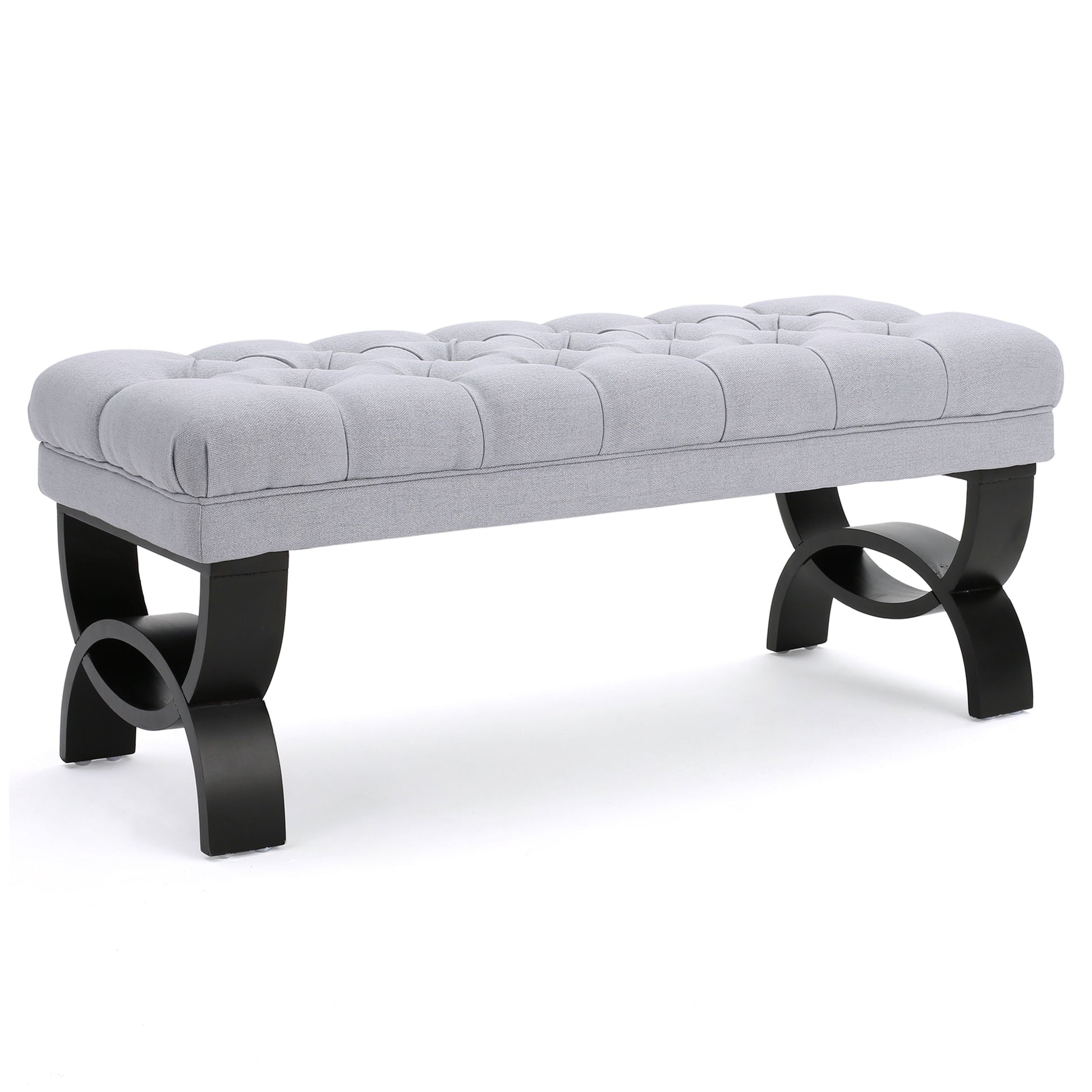 Hilton - Ottoman Bench With Classic Button Tufting - Light Gray