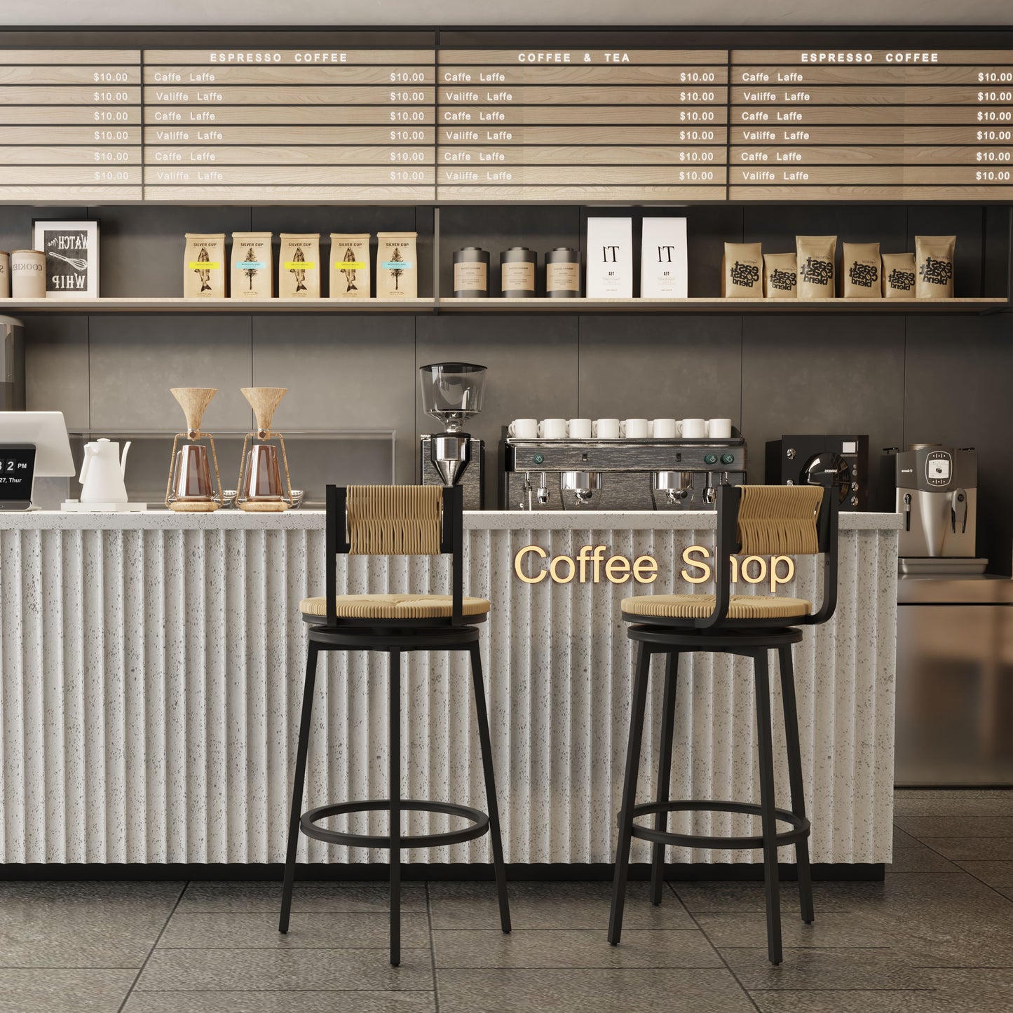 Honey Swivel Bar Stools Paper Rope Handwoven Barstools With Back (Set of 2) Rustic Round Counter Chairs For Dining Room, Kitchen Island - Honey