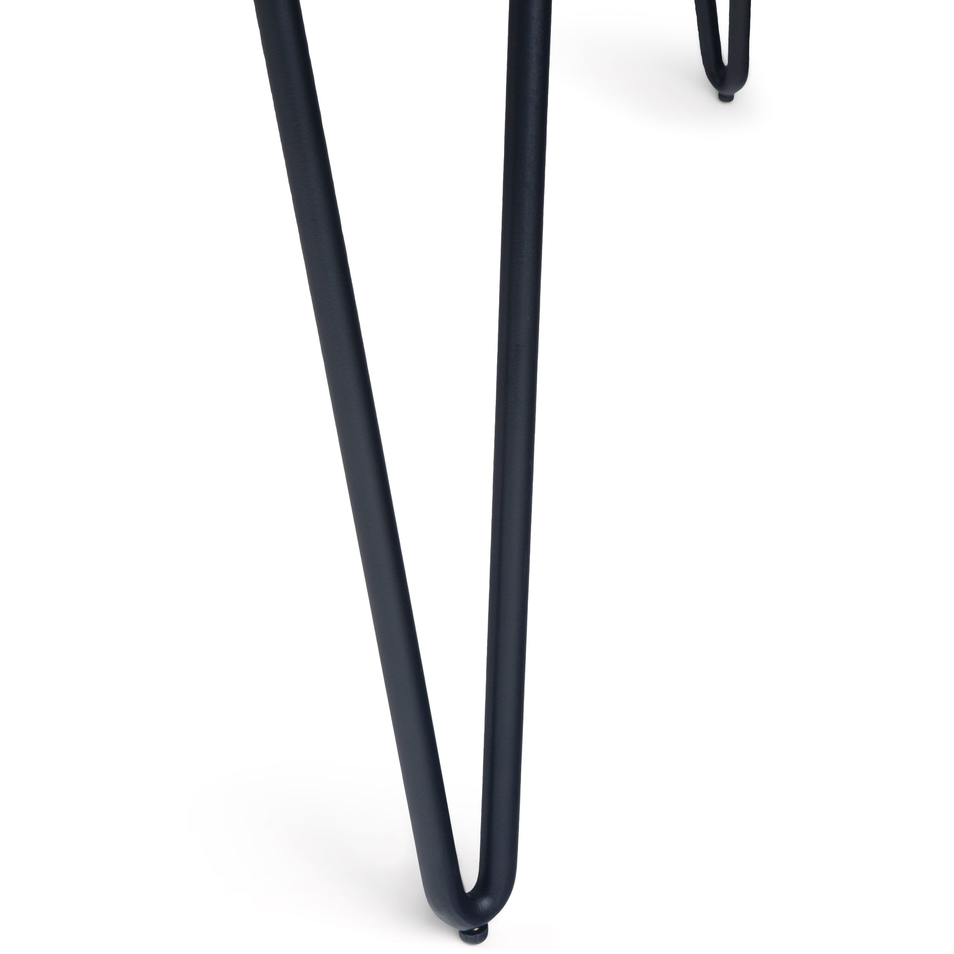 - Table base is made of powder-coated iron metal in Black with trendy hairpin-style legs that bring an open, airy feel to a dining space.