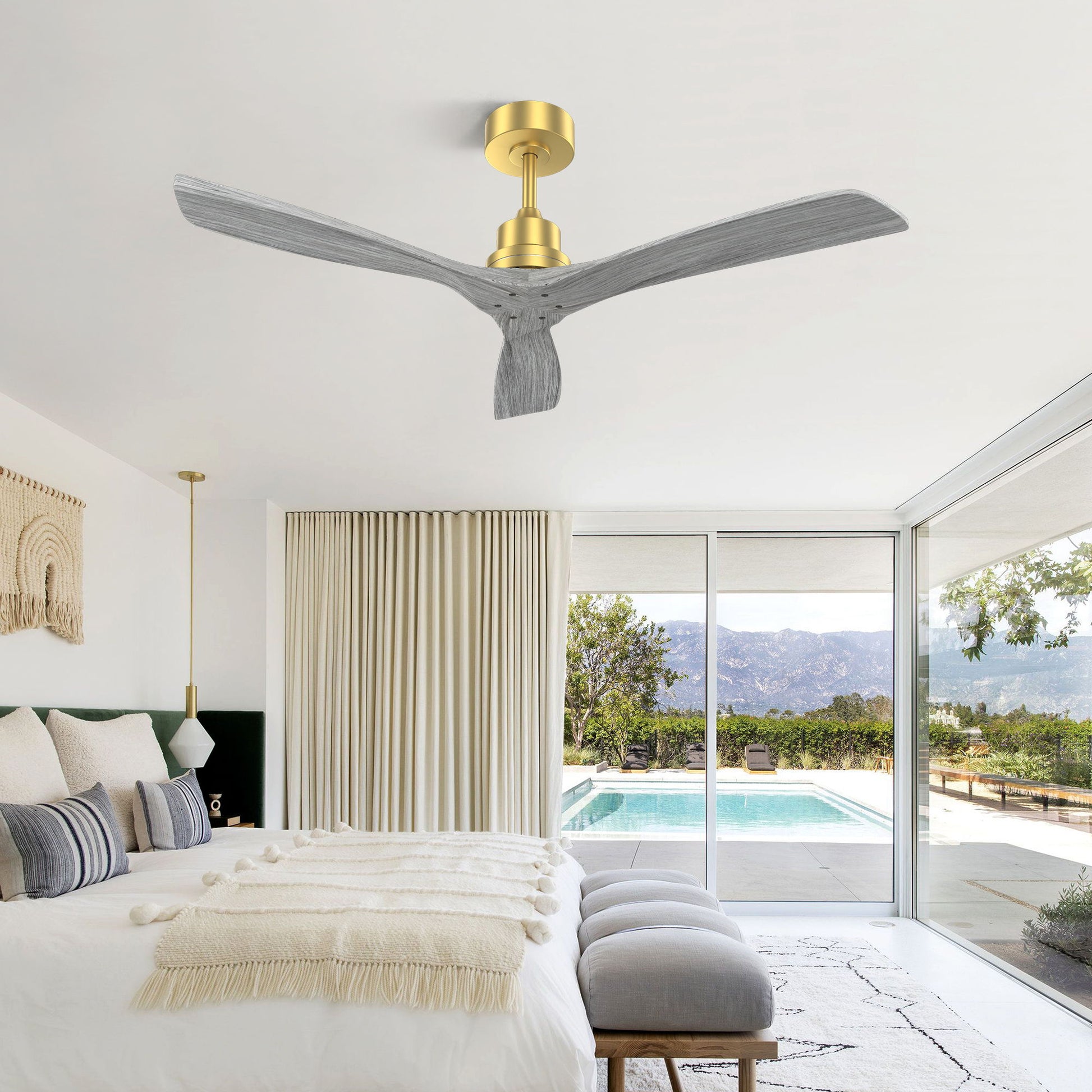 Indoor Ceiling Fan Without Light 3 Solid Wood Blades Remote Control Reversible Dc Motor - Gold