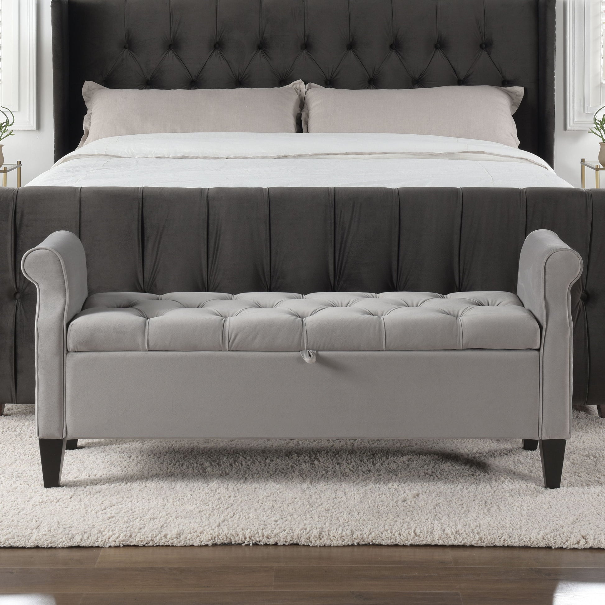 Jacqueline - Tufted Roll Arm Storage Bench - Opal Gray