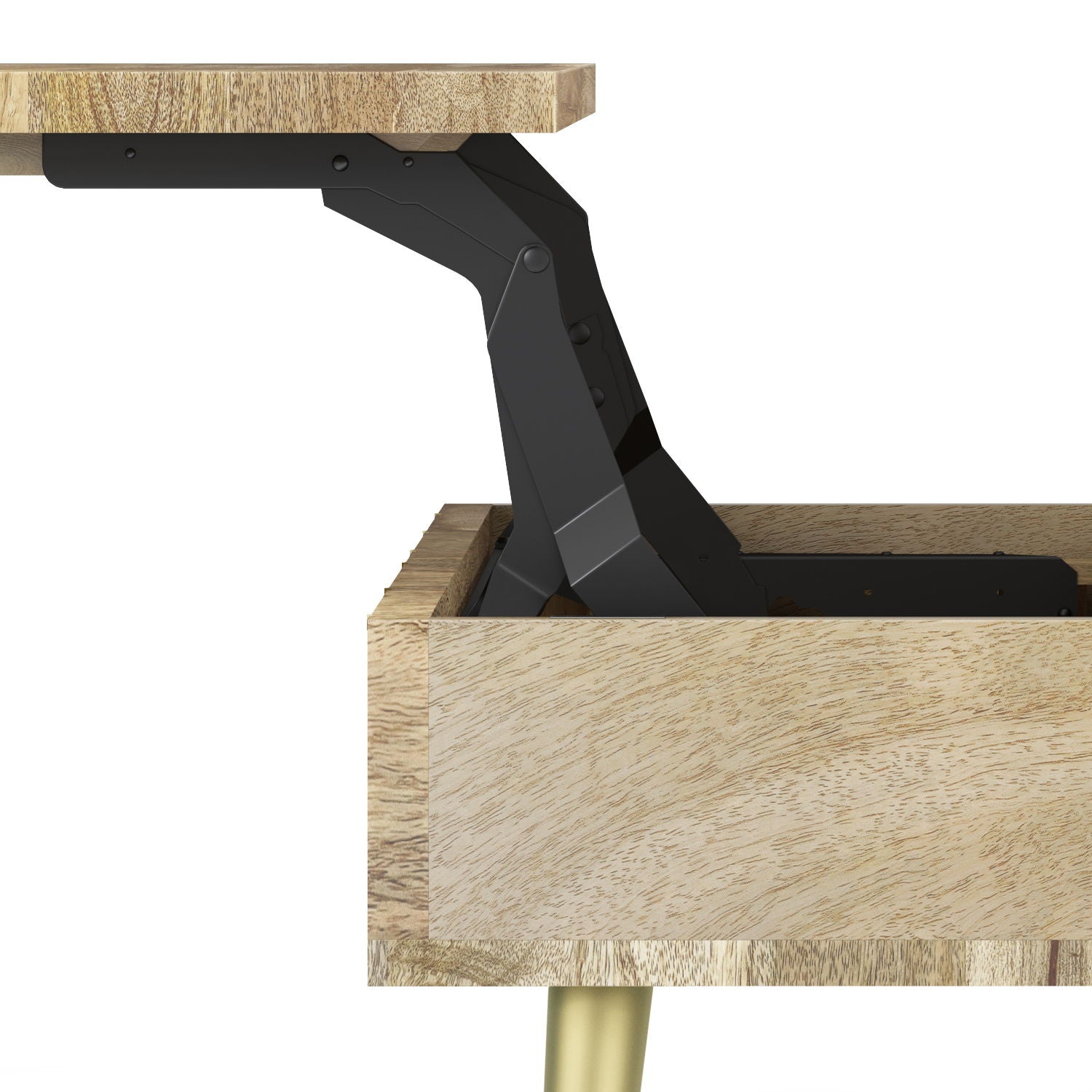 - Features lift top with large storage space and four angled metal legs in a gold finish