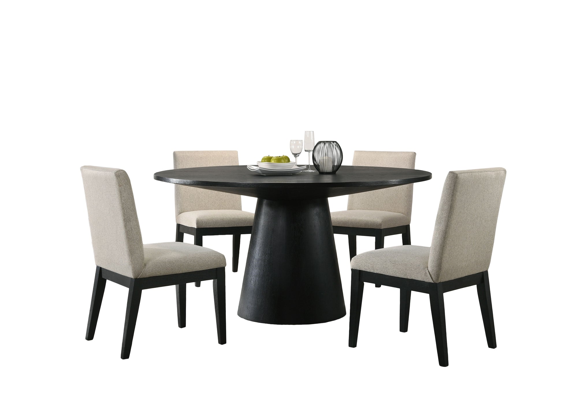 Jasper - 5 Piece Wide Contemporary Round Dining Table With Beige Fabric Chairs (Set of 5) - Black