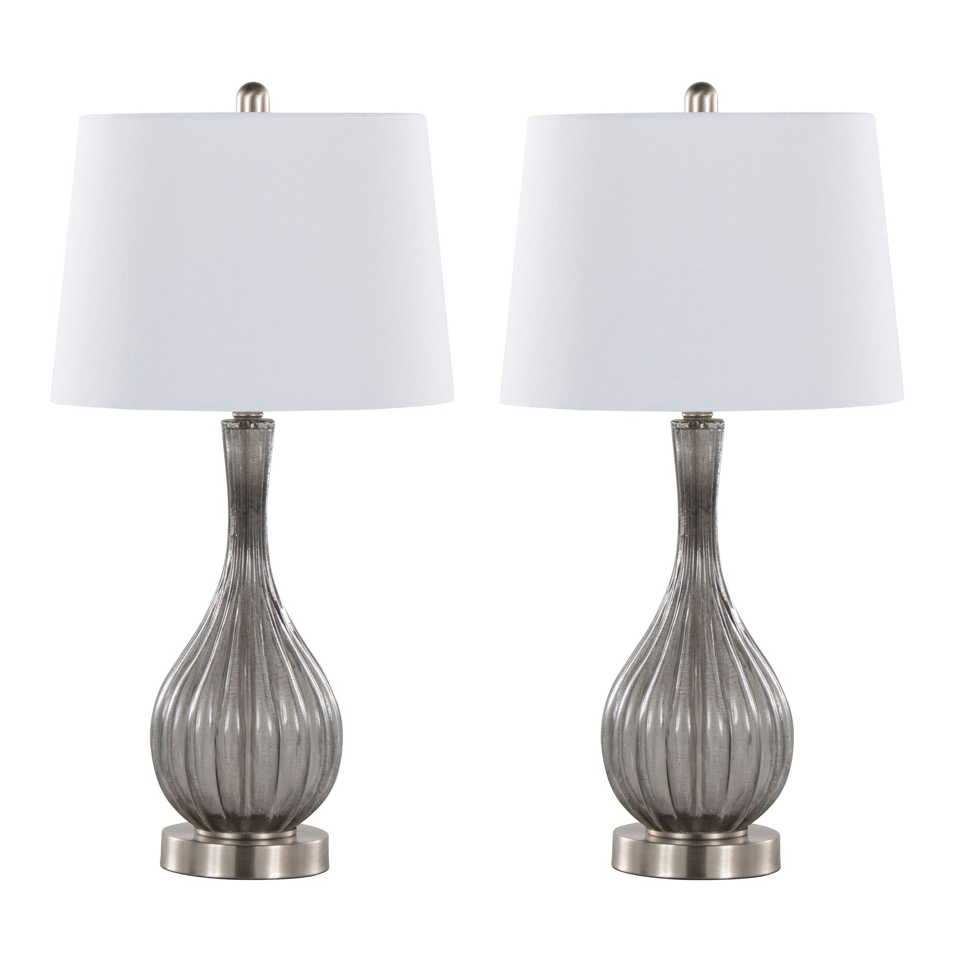 Jenny - Contemporary Table Lamp (Set of 2) - Clear Smokey Crackle / Nickel / White