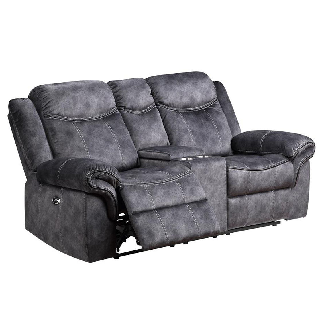 Jimny - Domino Power Console Reclining Loveseats With Power Switch - Gray