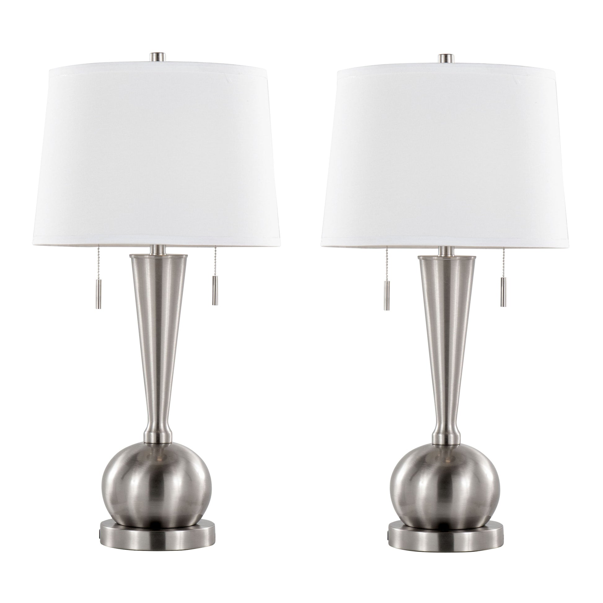 Jules - Contemporary Table Lamp Built In USB Port (Set of 2) - Nickel / White