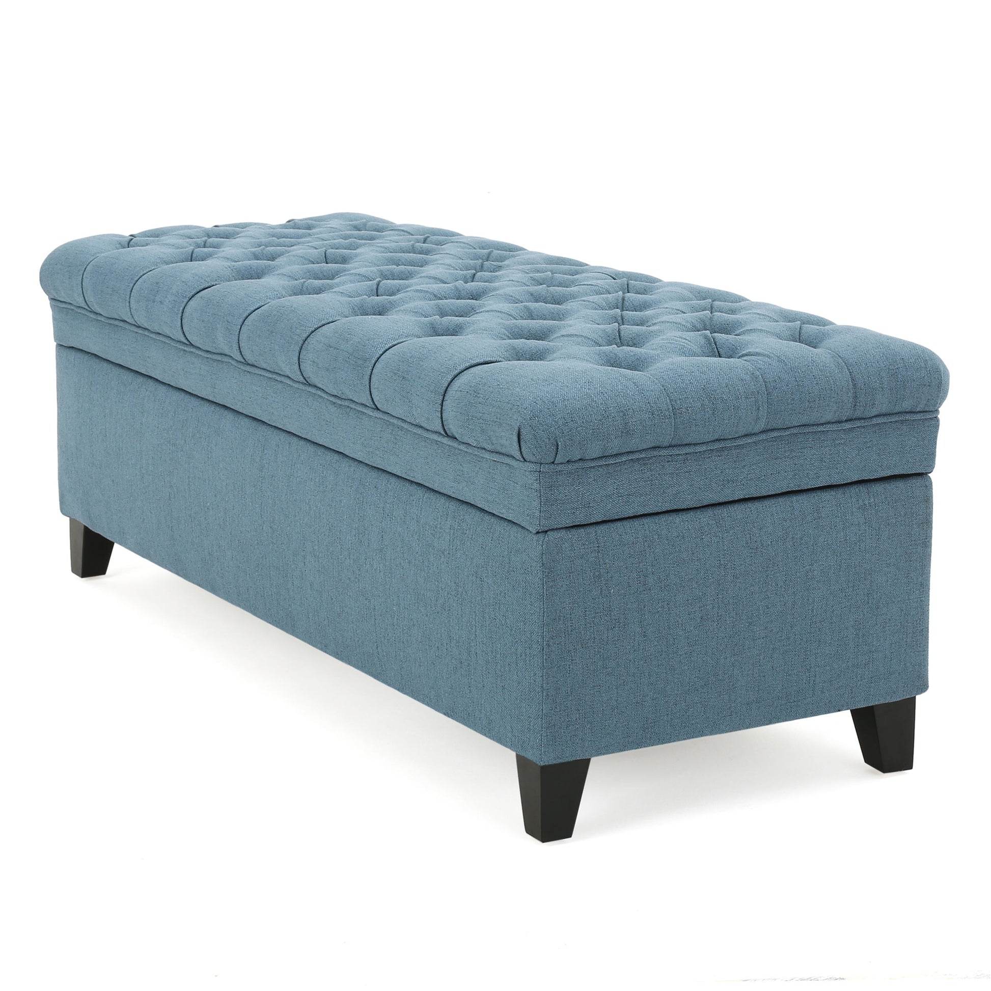 Juliana - Storage Ottoman With Stylish DesignÔøΩÔøΩÔøΩÔøΩÔøΩÔøΩÔøΩÔøΩÔøΩÔøΩÔøΩÔøΩÔøΩÔøΩÔøΩ Fabric And Birch Legs - Blue