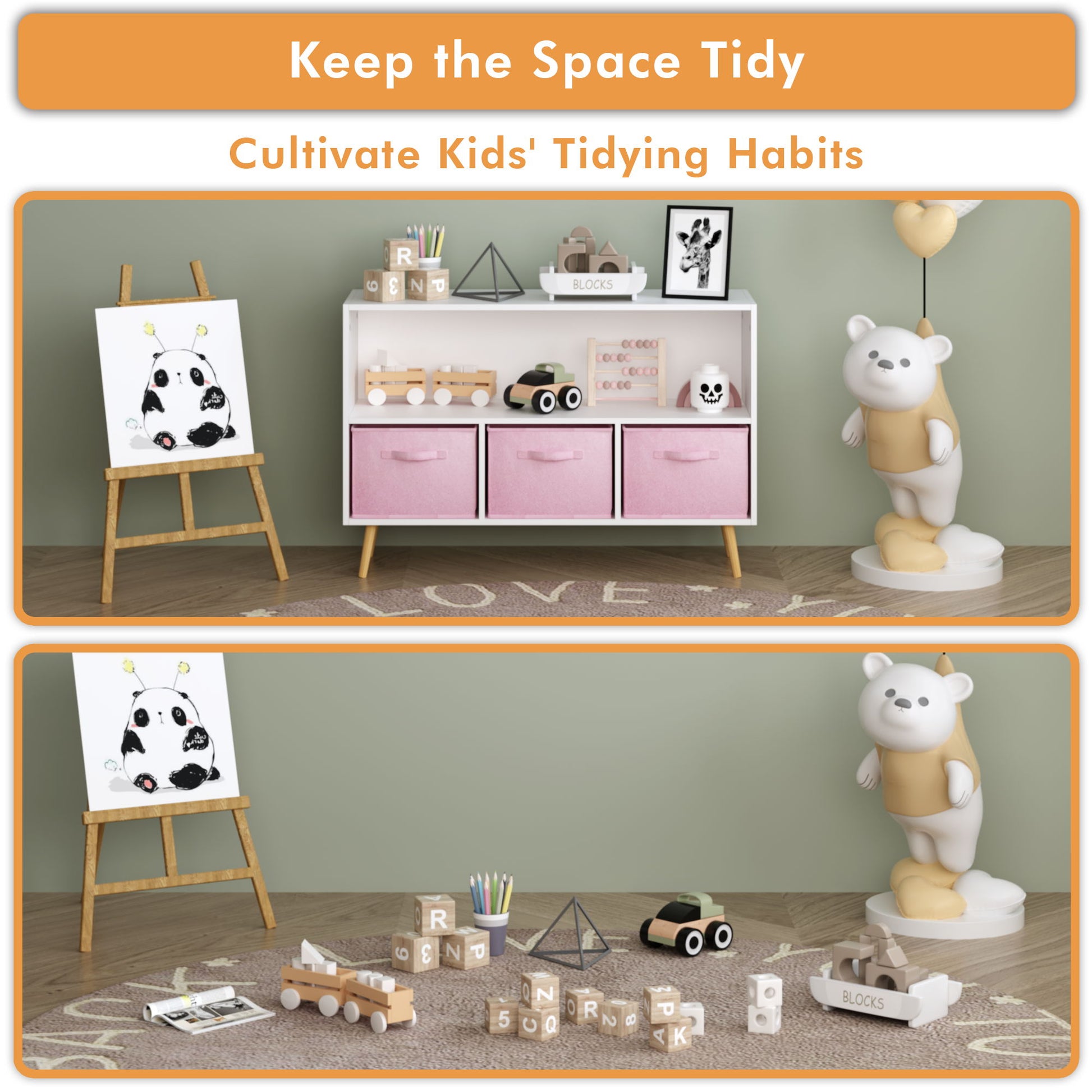 - Multi-purpose: Includes three fabric drawers for books, toys, and art accessories.