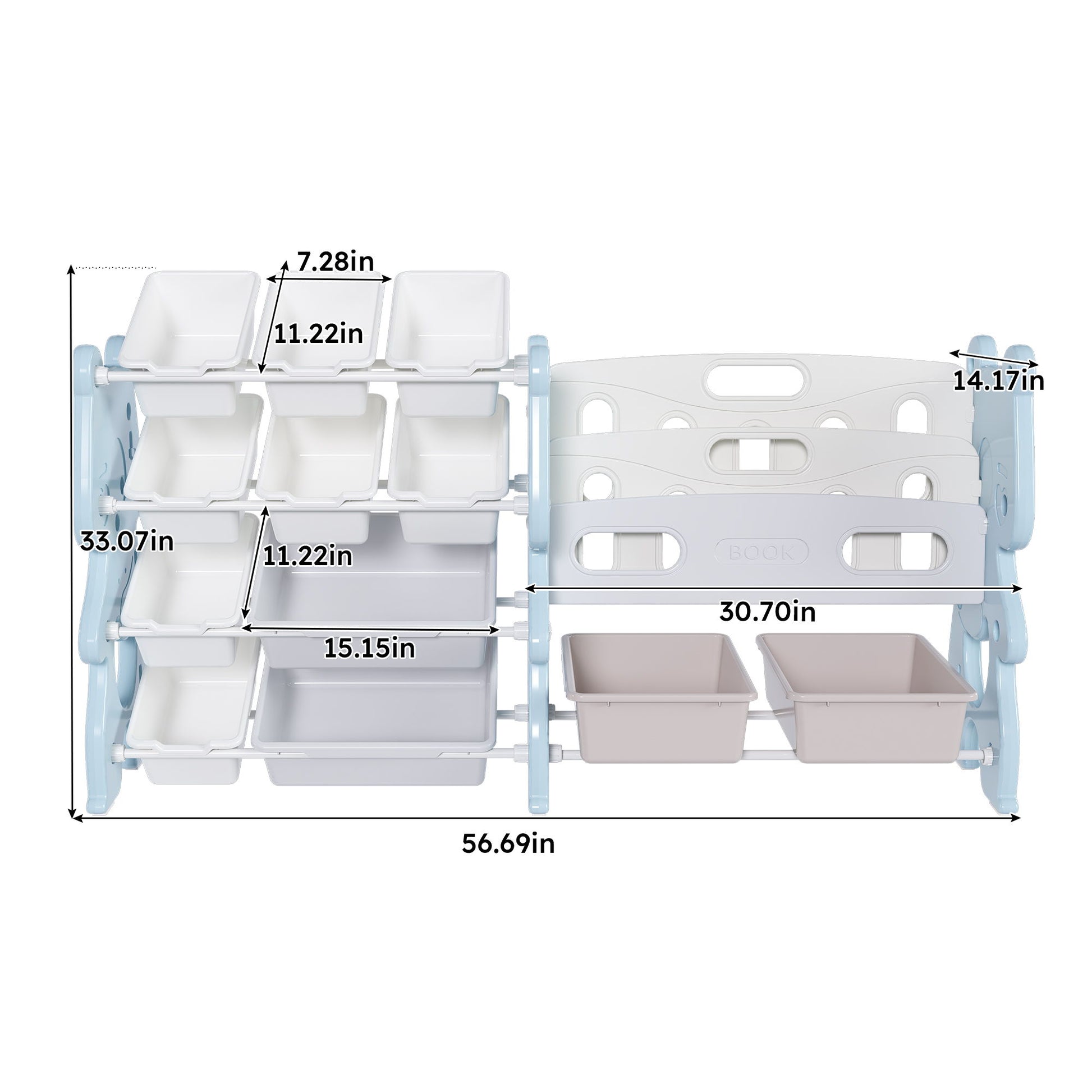 Kids Toy Storage Organizer With 2 Tier Bookshelf, Toy Storage With 12 Bins - Blue