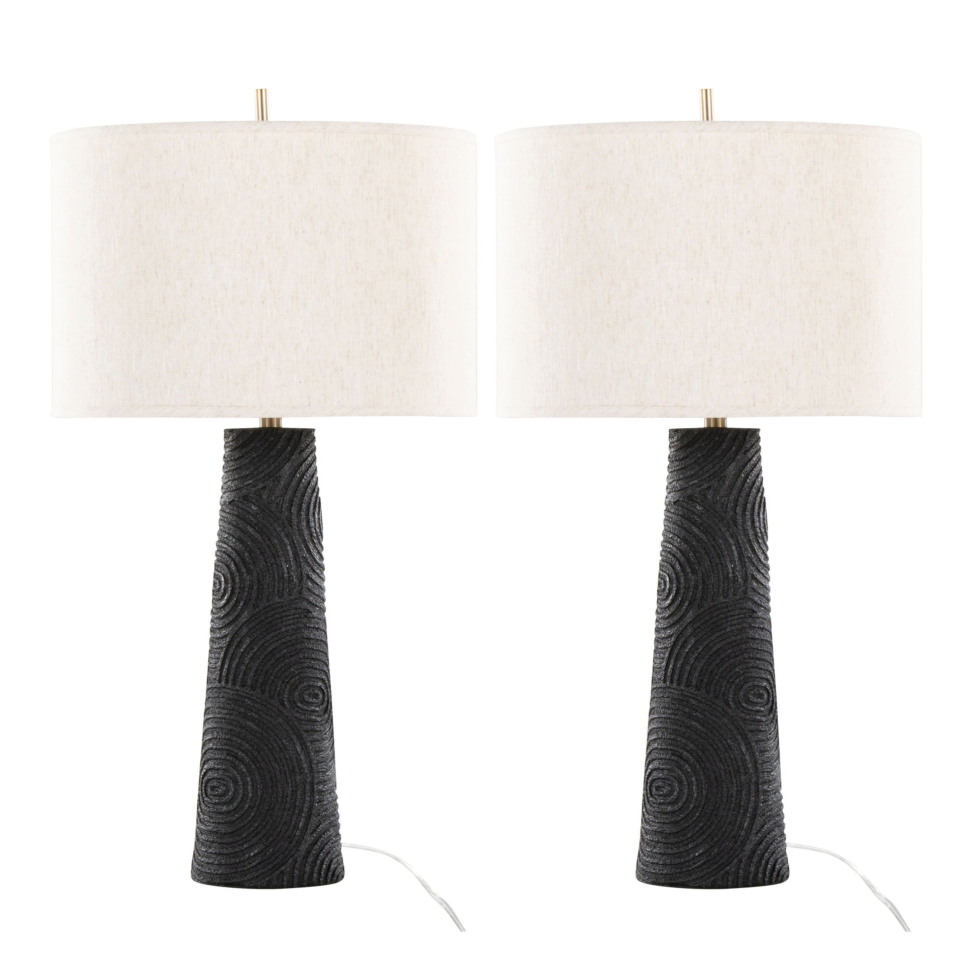 Kona - Contemporary Table Lamp (Set of 2) - Matte Black / Modern Brass / Natural