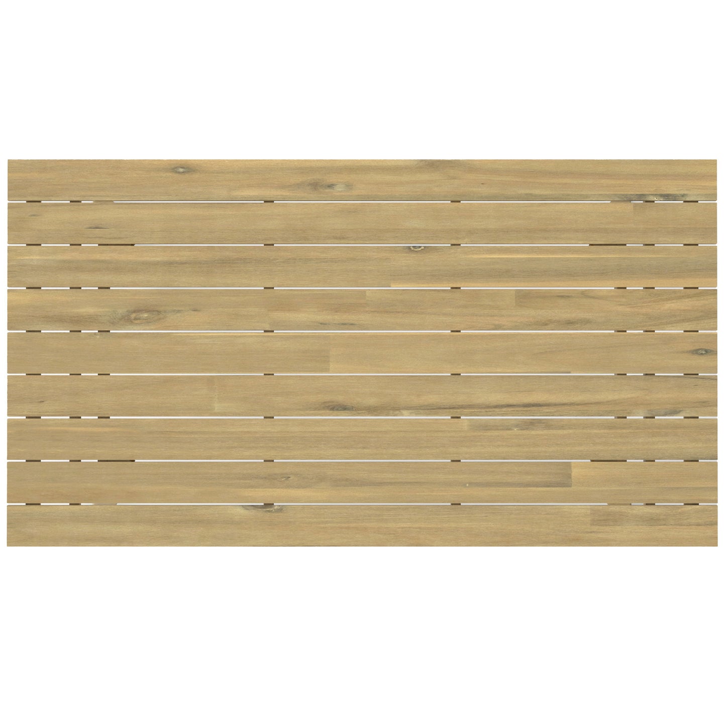 - Features spacious thick slatted solid acacia wood top and 4 solid acacia wood angular legs for strength and stability