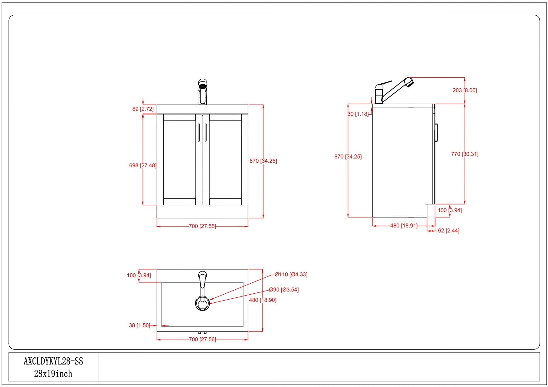 - DIMENSIONS: 27.6" W x 34.25" H x 21.7" D Sink Depth: 10 inches