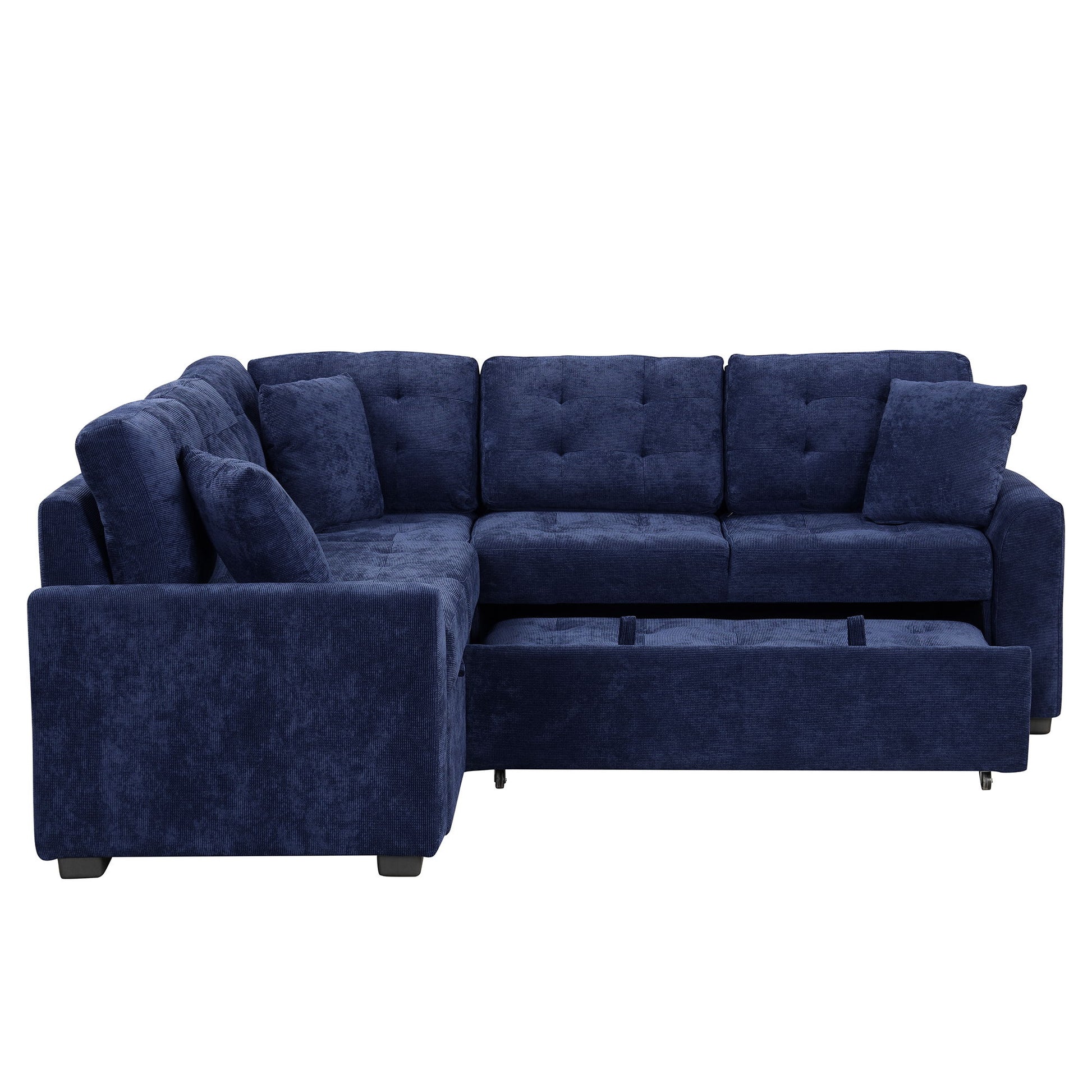 L-Shape Sofa Bed Pull-Out Sleeper Sofa With Wheels, USB Ports, Power Sockets For Living Room - Navy Blue