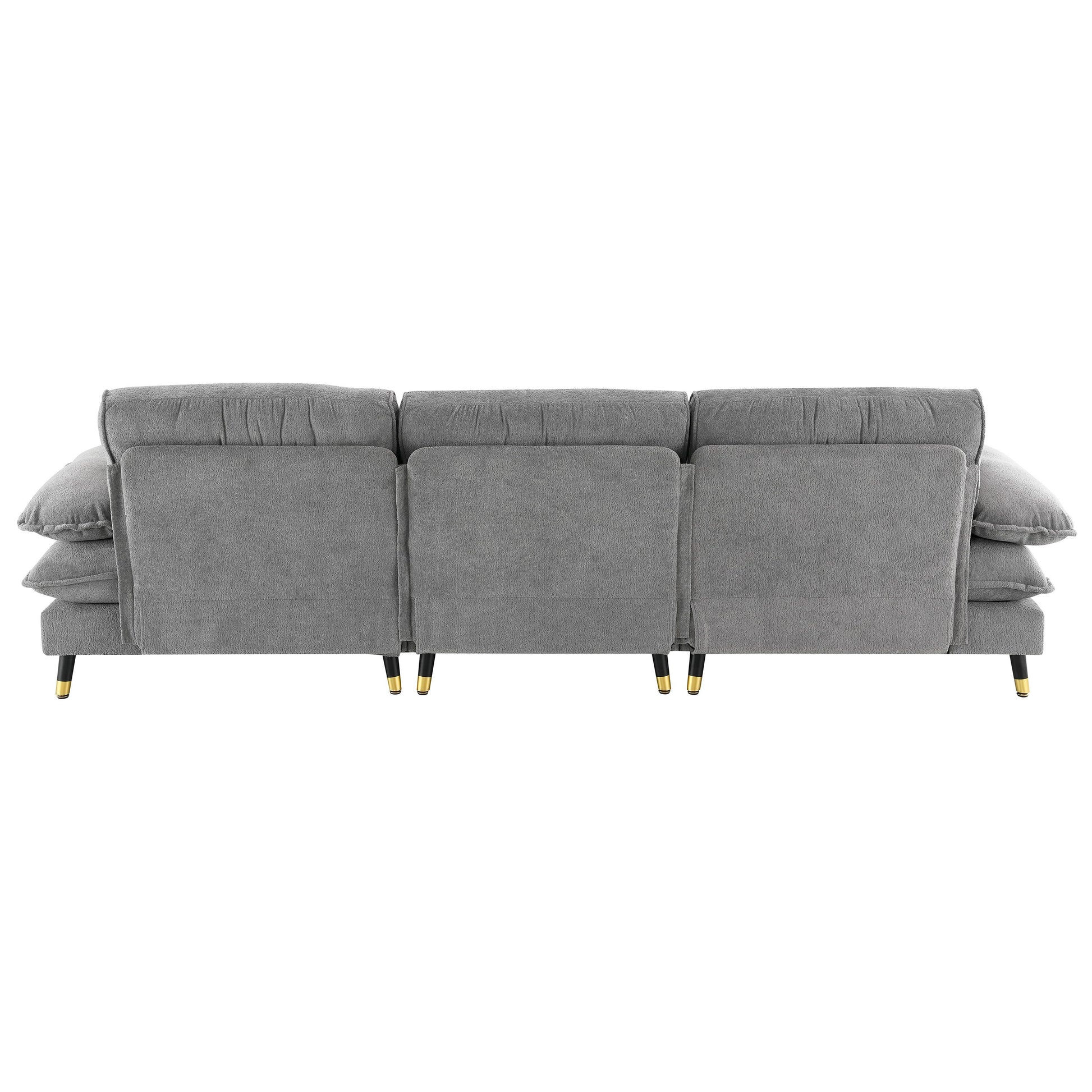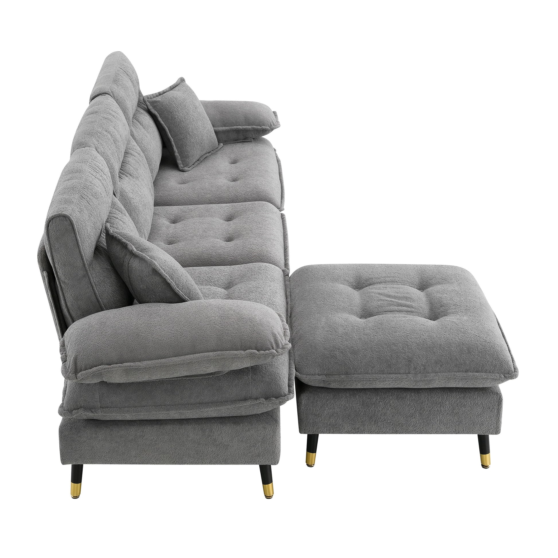 L Shaped Convertible Sectional Sofa 4 Seat Tufted Couch Set With Two Tone Adjust Legs Cloud Movable Ottoman - Gray