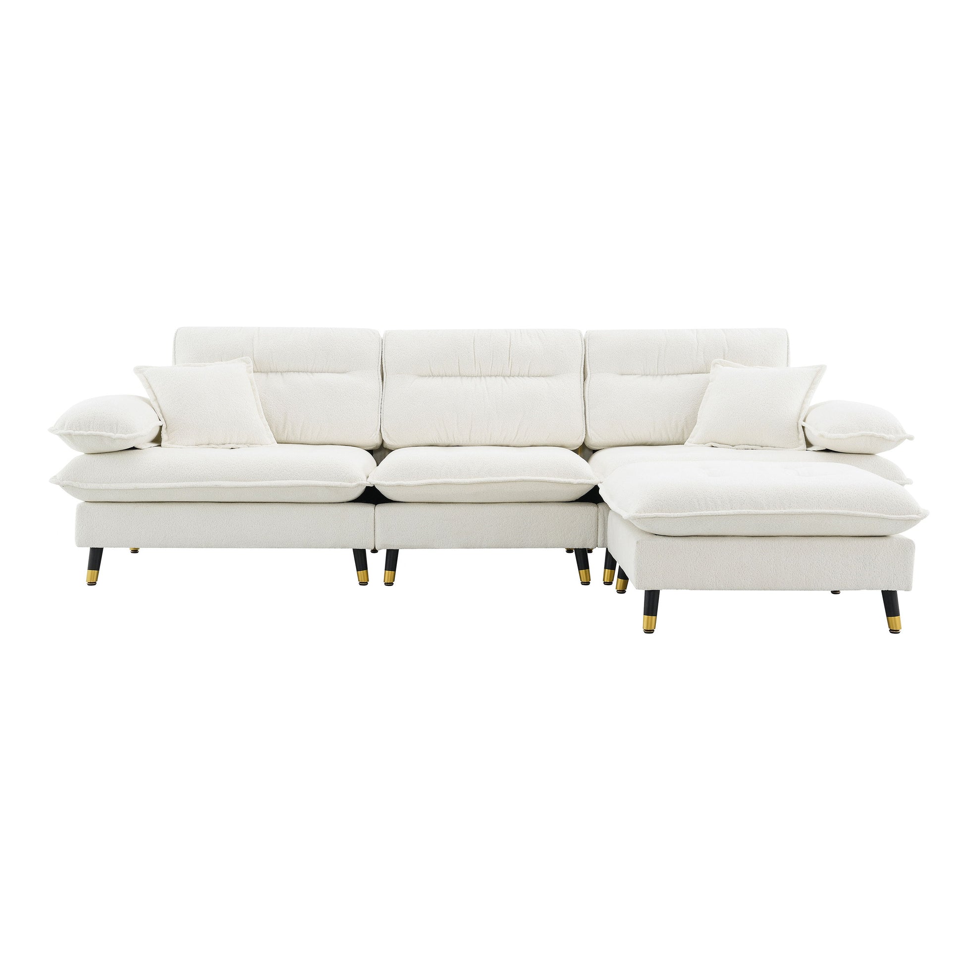 L Shaped Convertible Sectional Sofa 4 Seat Tufted Couch Set With Two Tone Adjust Legs Cloud Movable Ottoman - White