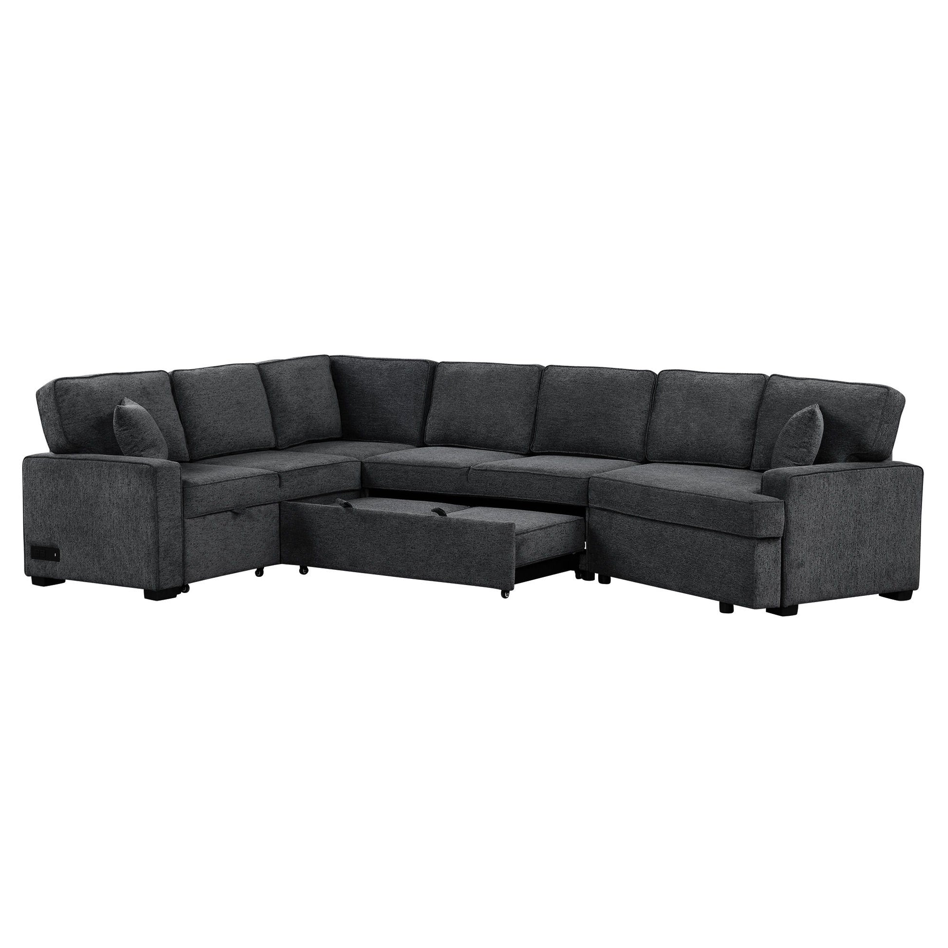L-Shaped Sofa Sectional Sofa Couch Pull-Out Sofa Bed With Charging Devices And Cup Holders For Living Room - Blue Black
