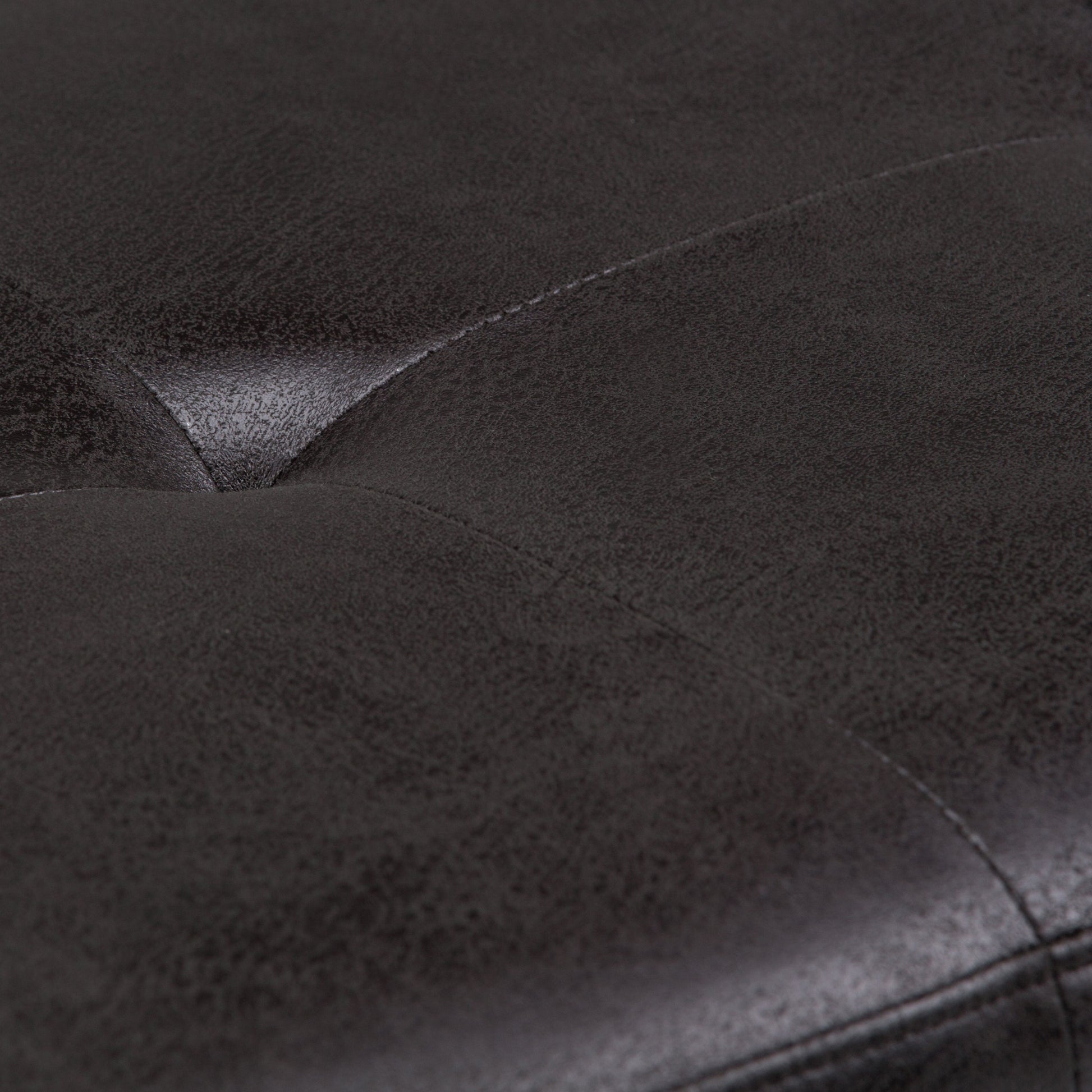 - Upholstered with a durable Distressed Black Vegan Faux Leather