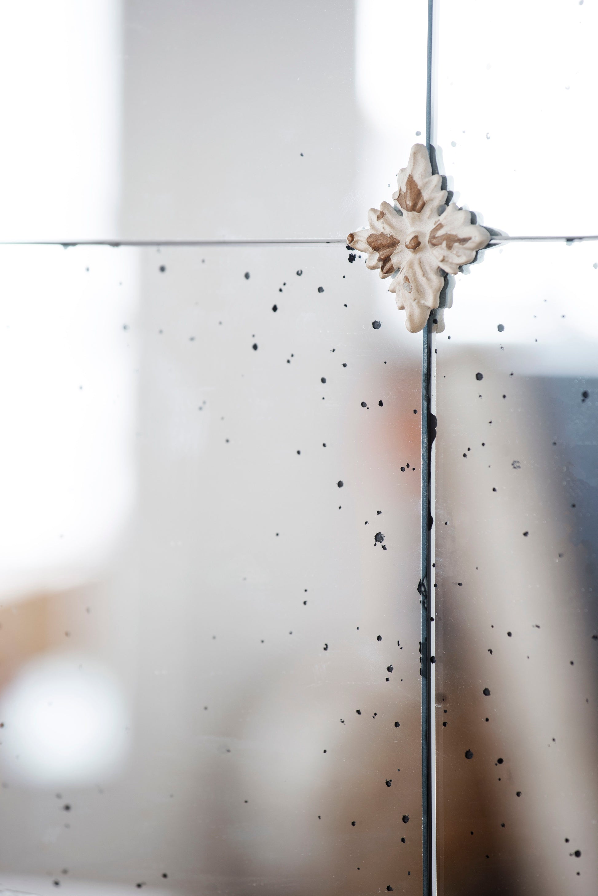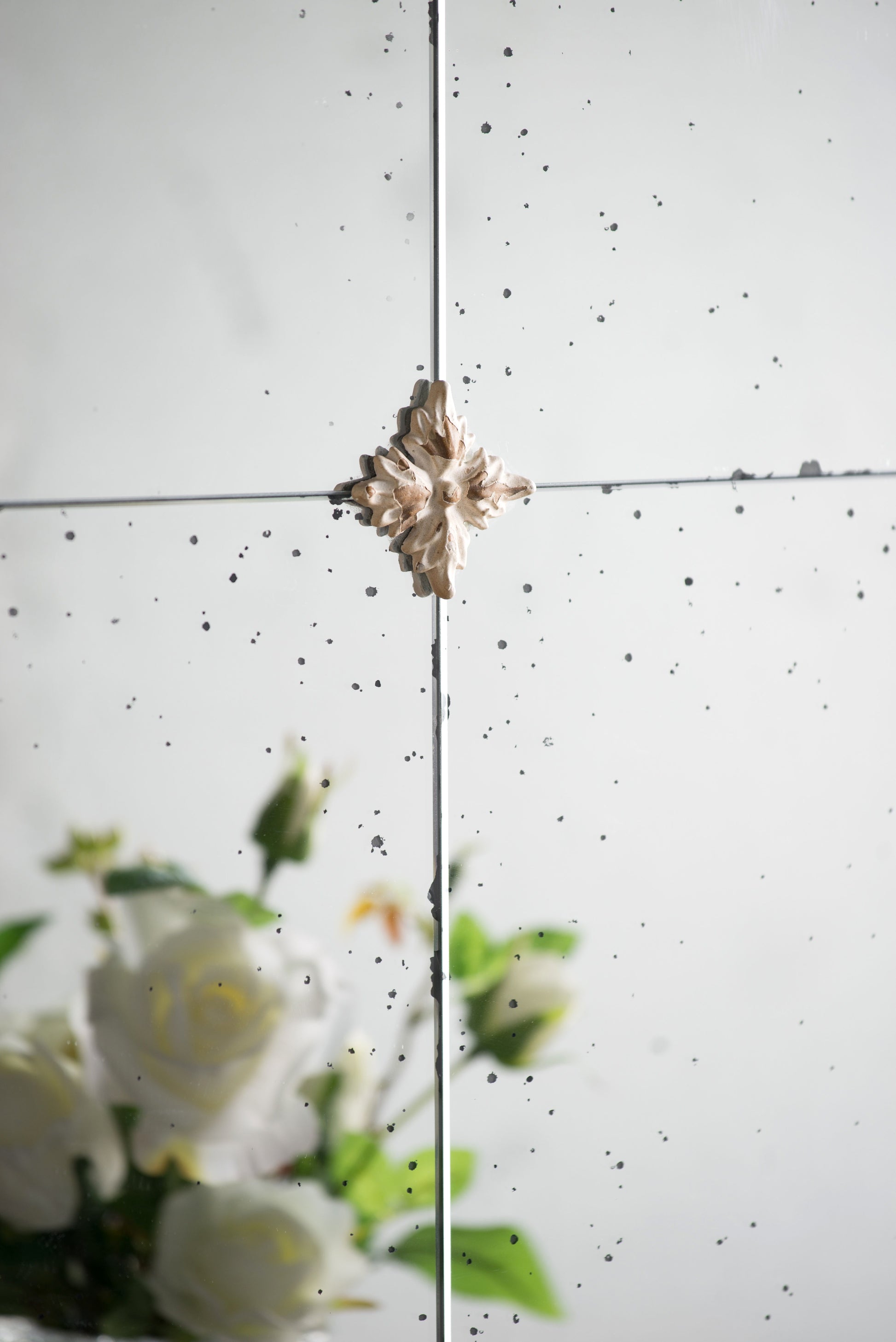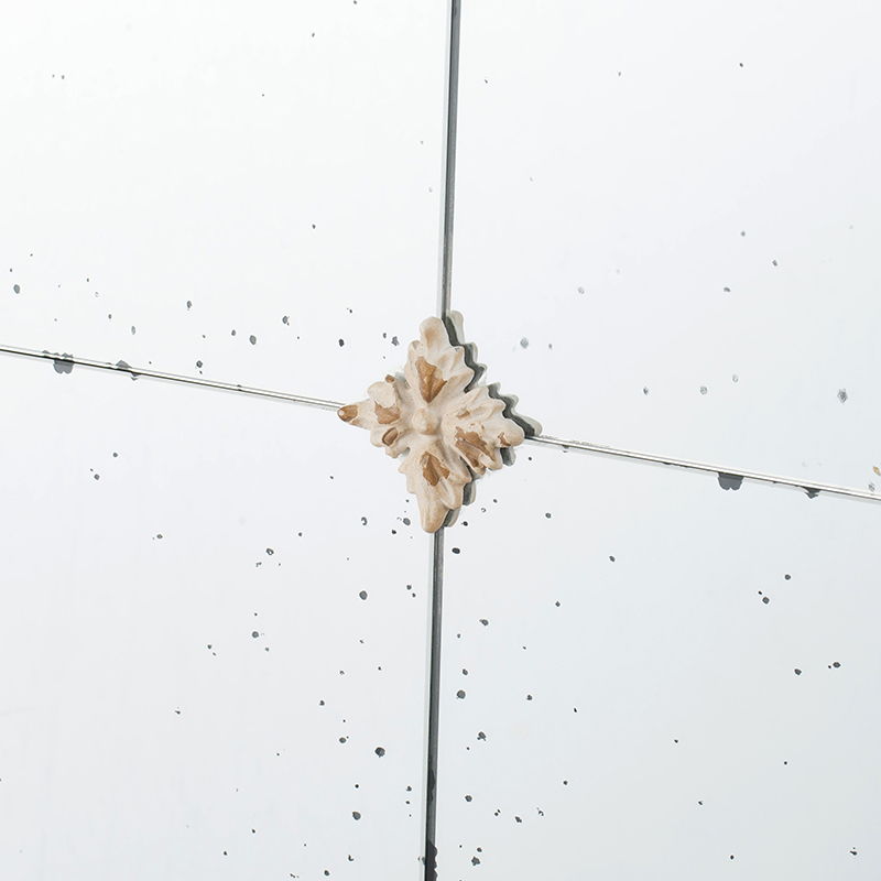 - Decorative Design: The mirror surface includes a pane-like grid pattern with three small medallions, creating a distinctive window-like appearance.