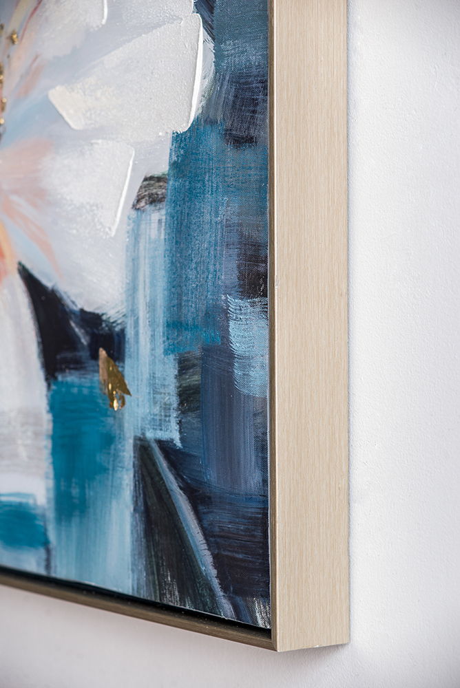Large Rectangle Framed Wall Art Flower Canvas Print, Home Decor For Living Room Kitchen Foyer Office - Blue
