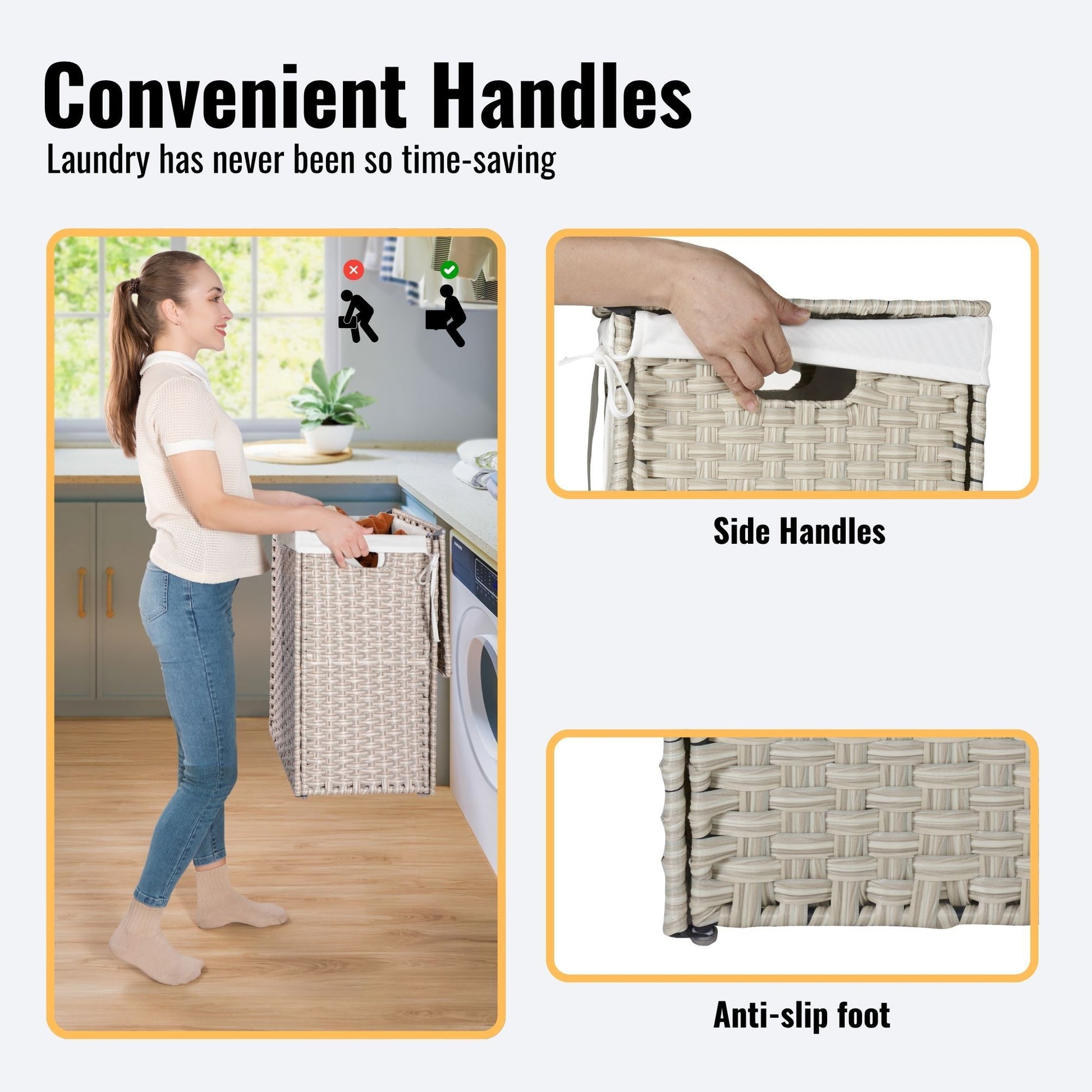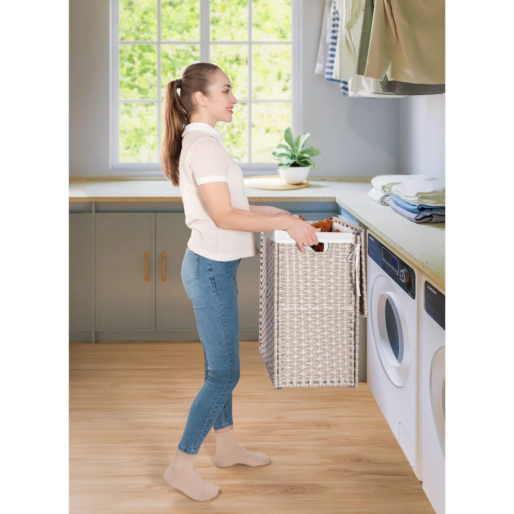 Laundry Hamper With Lid PE Rattan Powder Coating Frame Clothes Hampers With 2 Removable Bags, 100L - Gray