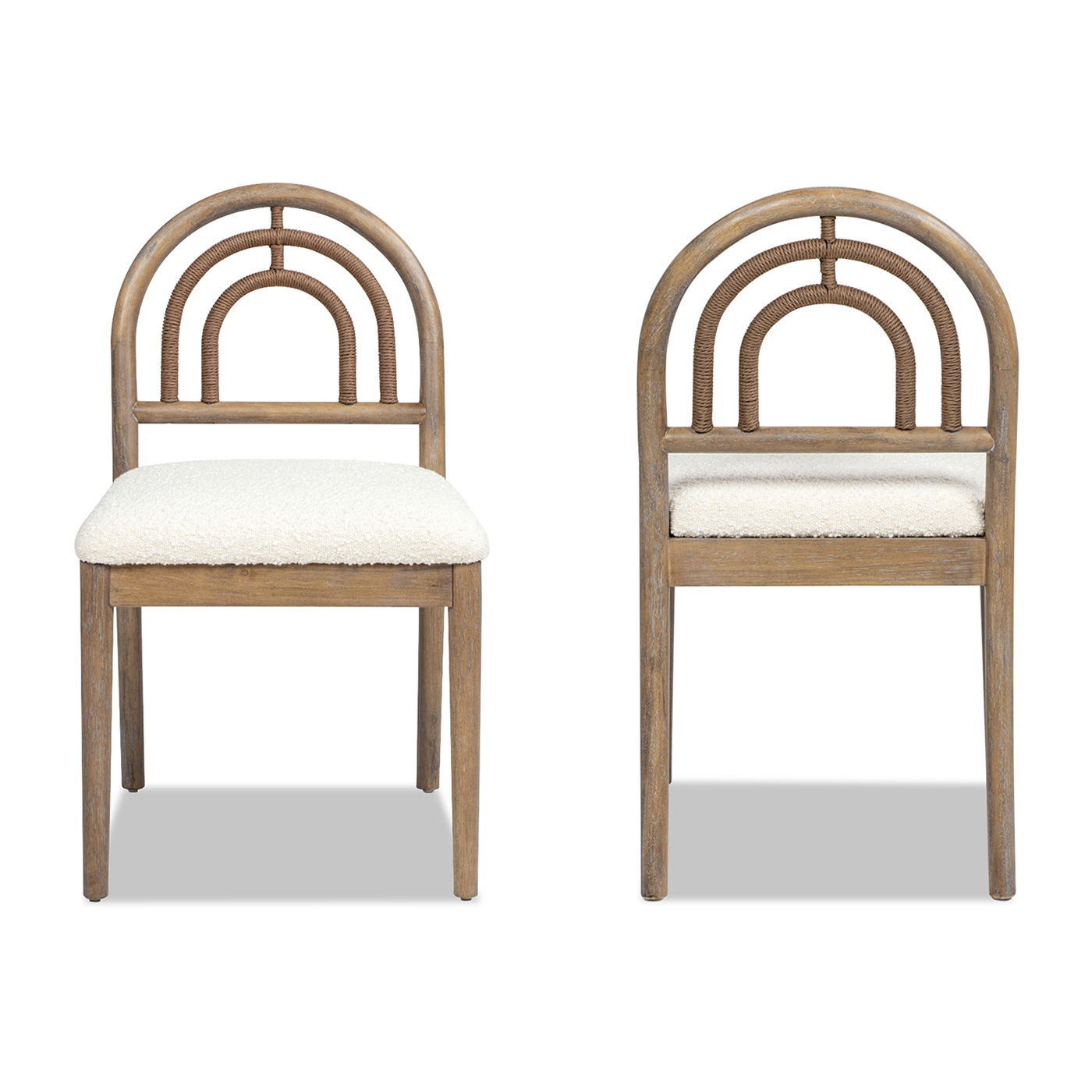 - Unique Arched Back: The chairs feature a distinctive arched back design wrapped in rope, adding texture and visual interest to your decor.