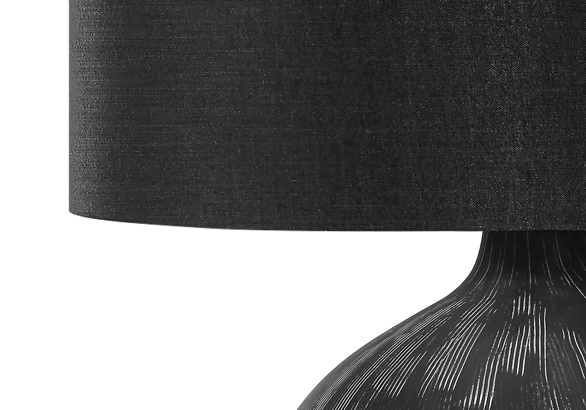 - Contemporary Design: This table lamp features a bold and modern design with a black ceramic textured base and a wide black fabric shade, topped with a round black finial, adding a stylish touch to any room.