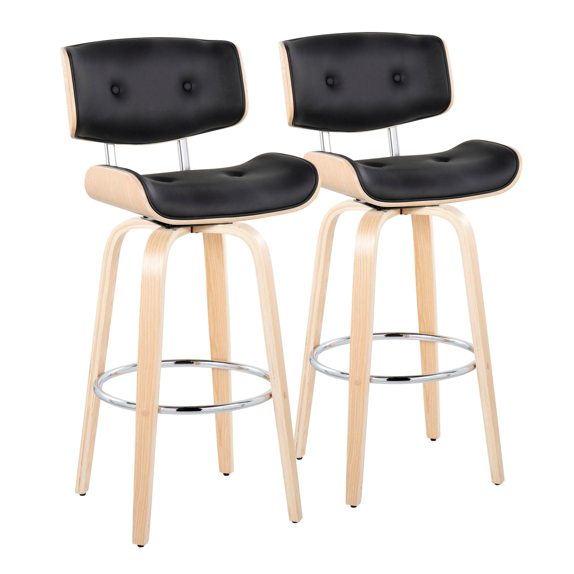 Lombardi - Mid-Century Modern Fixed Height Barstool With Swivel With Round Footrest (Set of 2) - Natural / Black