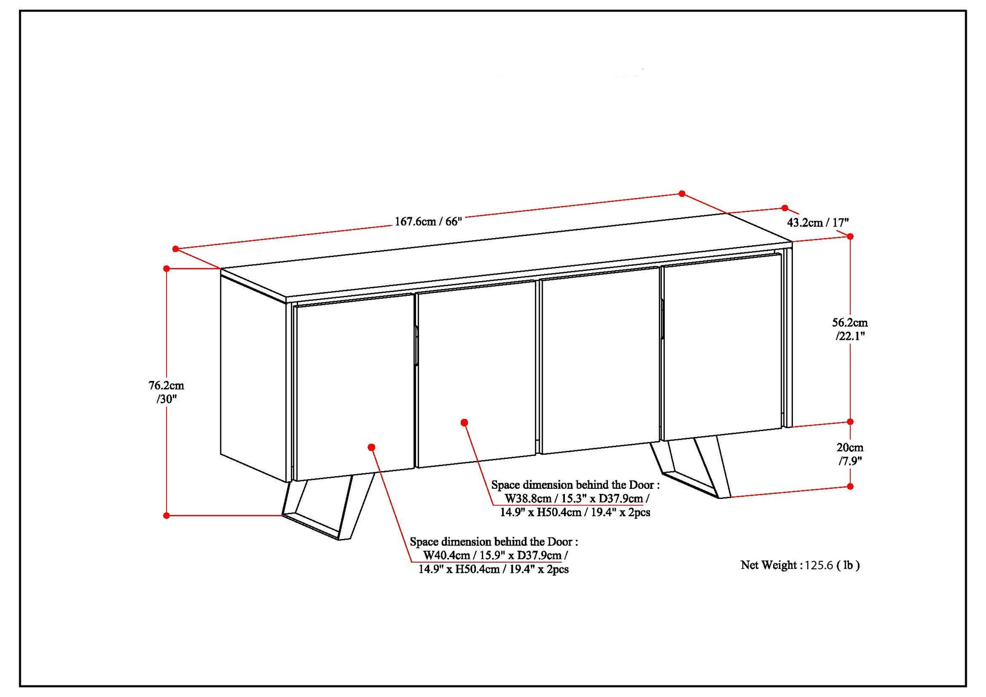Lowry - Large 4 Door Sideboard Buffet - Distressed Charcoal Brown