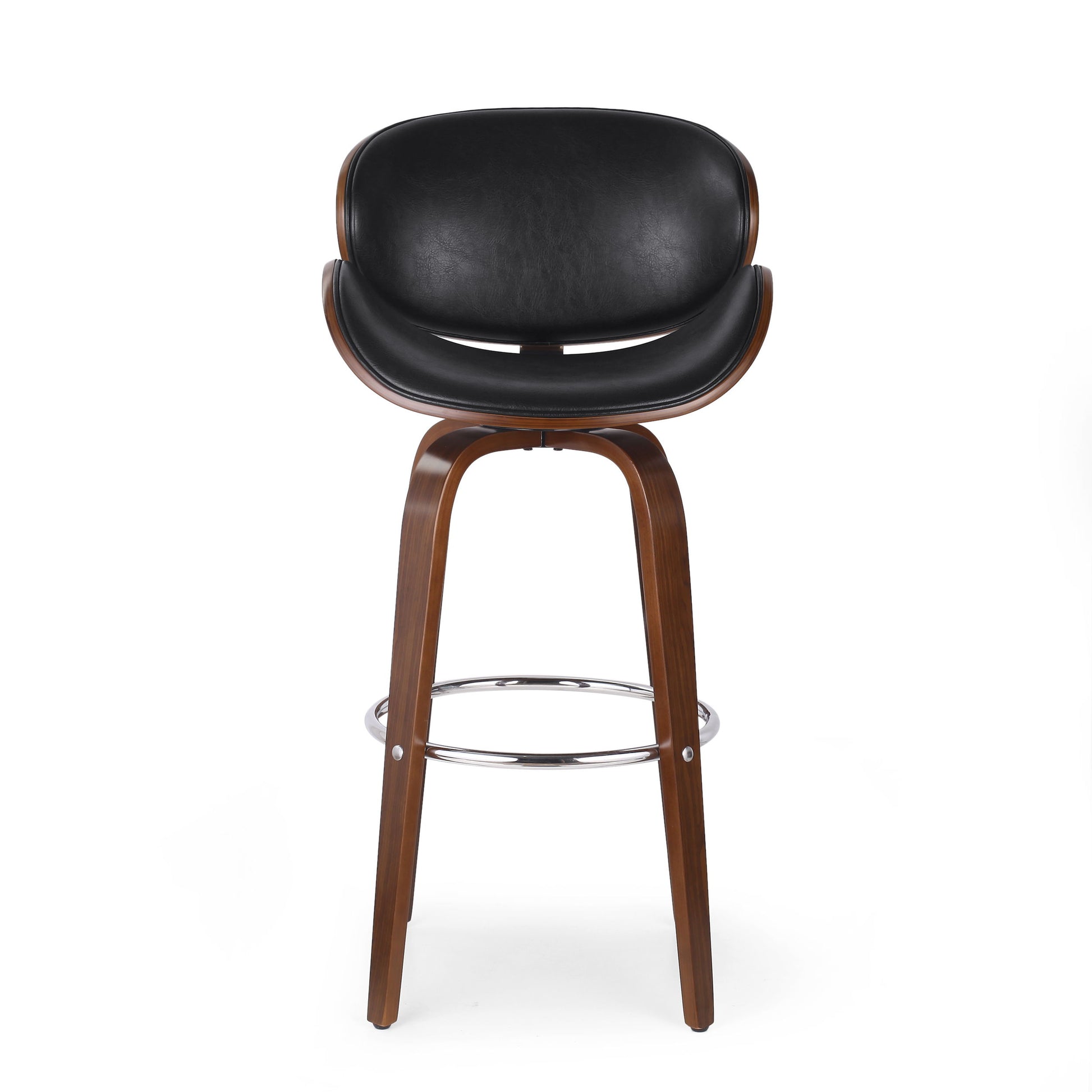Lumos - Mid Century Modern Upholstered Swivel Barstool - Walnut / Black