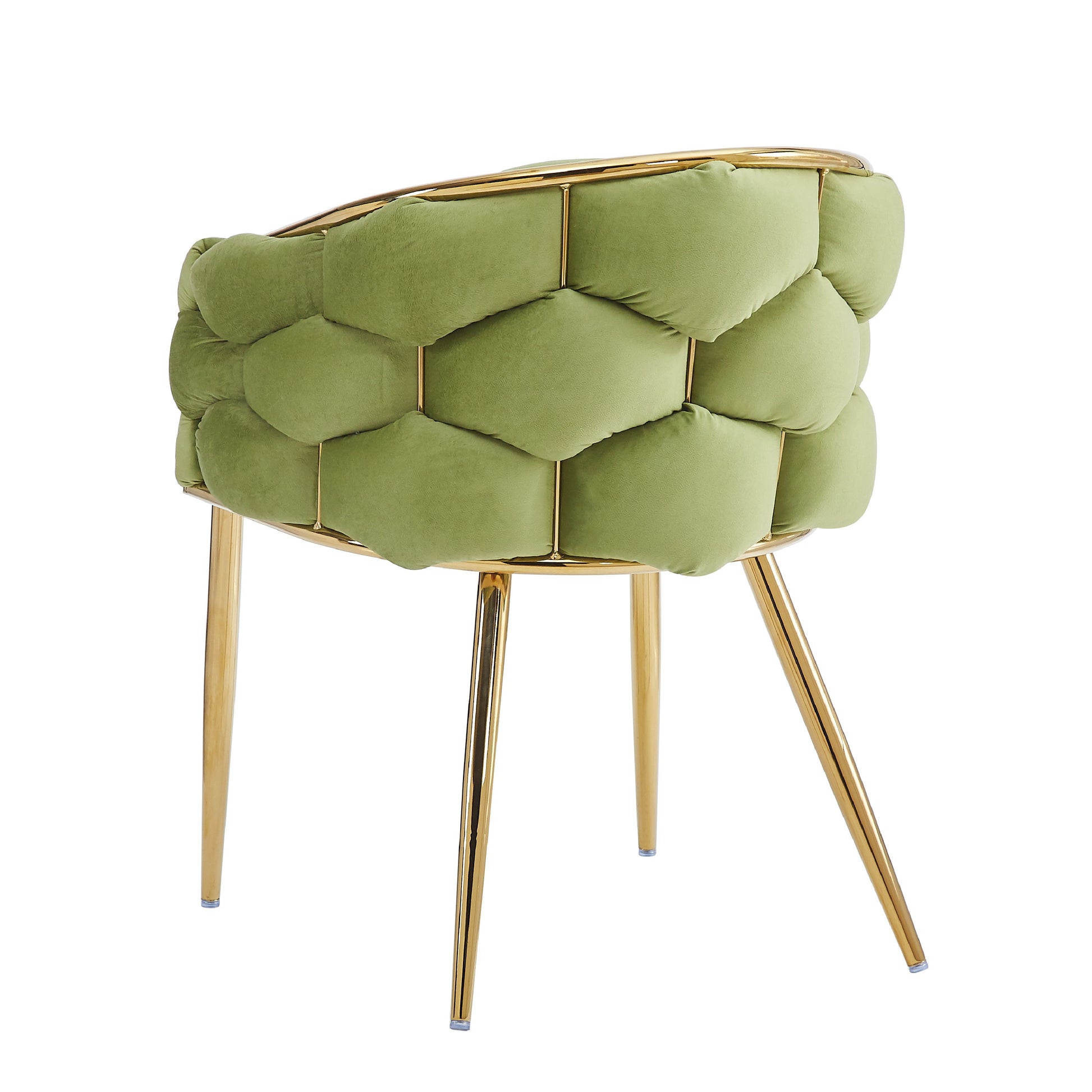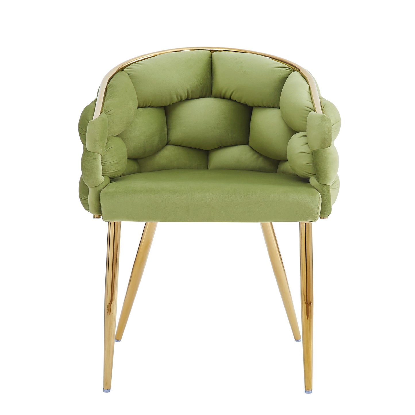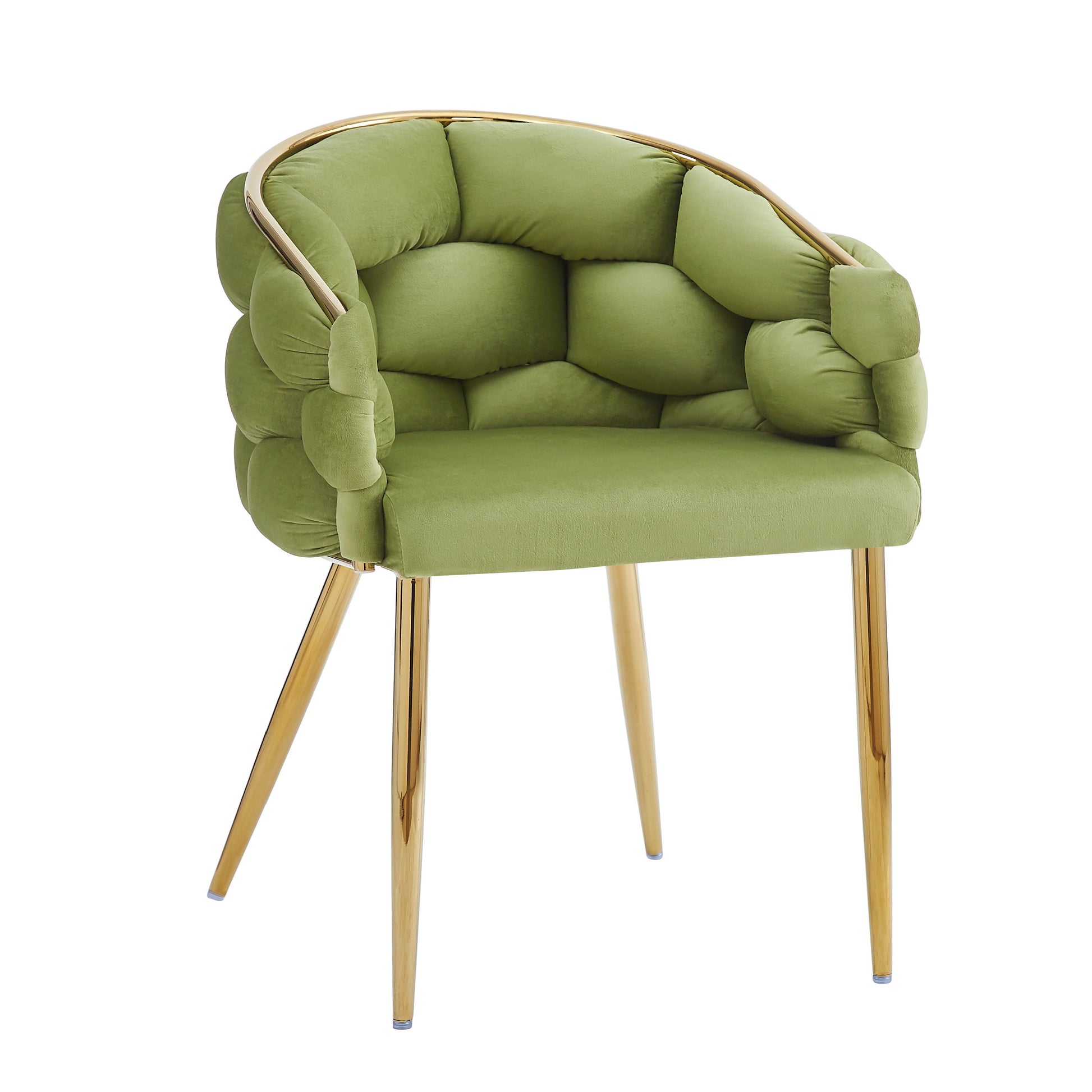 Luxury Handmade Accent Chair (Set of 2) With Gold Legs, Modern Green Velvet Armchair For Living Room And Bedroom - Green