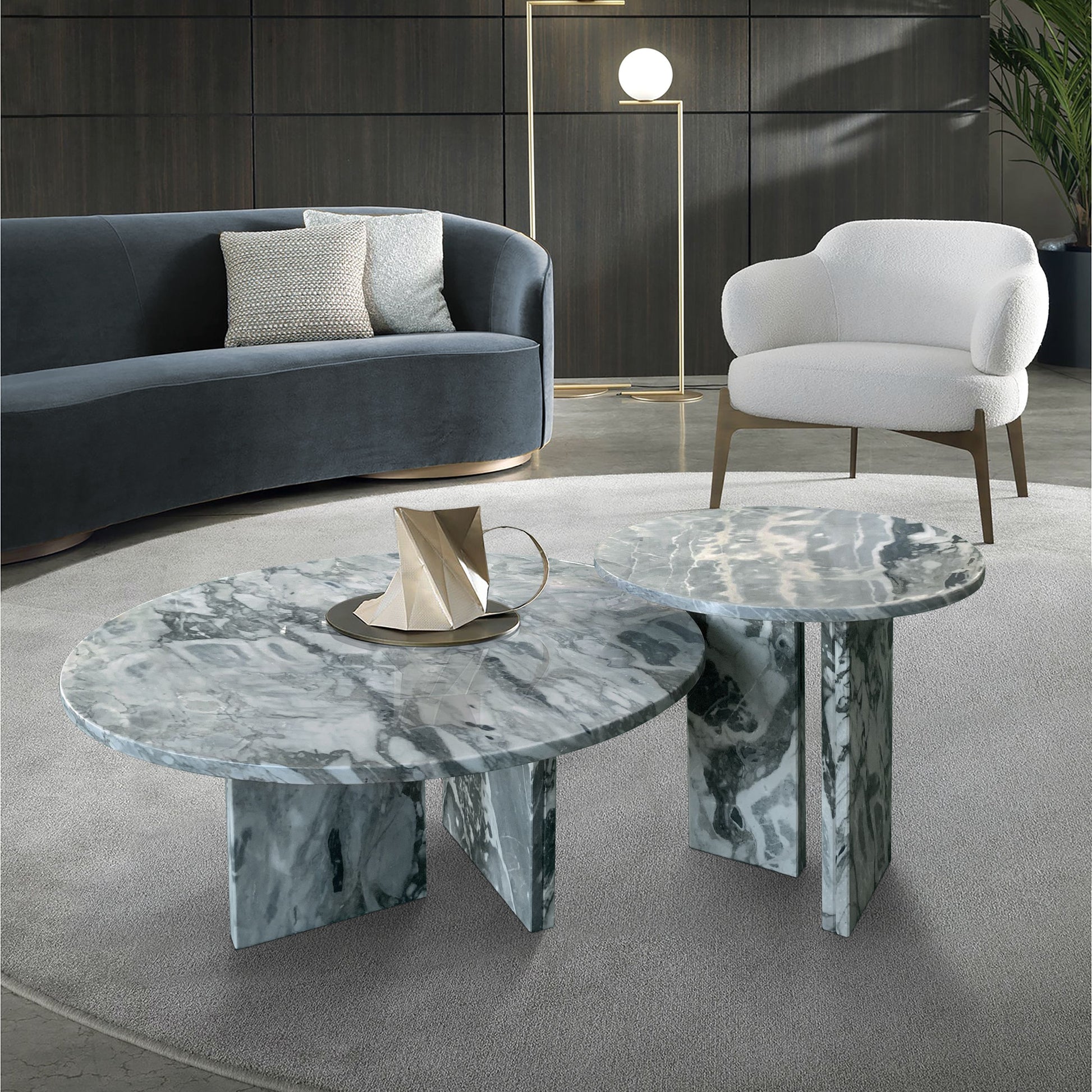 Luxury Natural Marble Coffee Table Set With Metal Base For Living Room - Blue / Gray