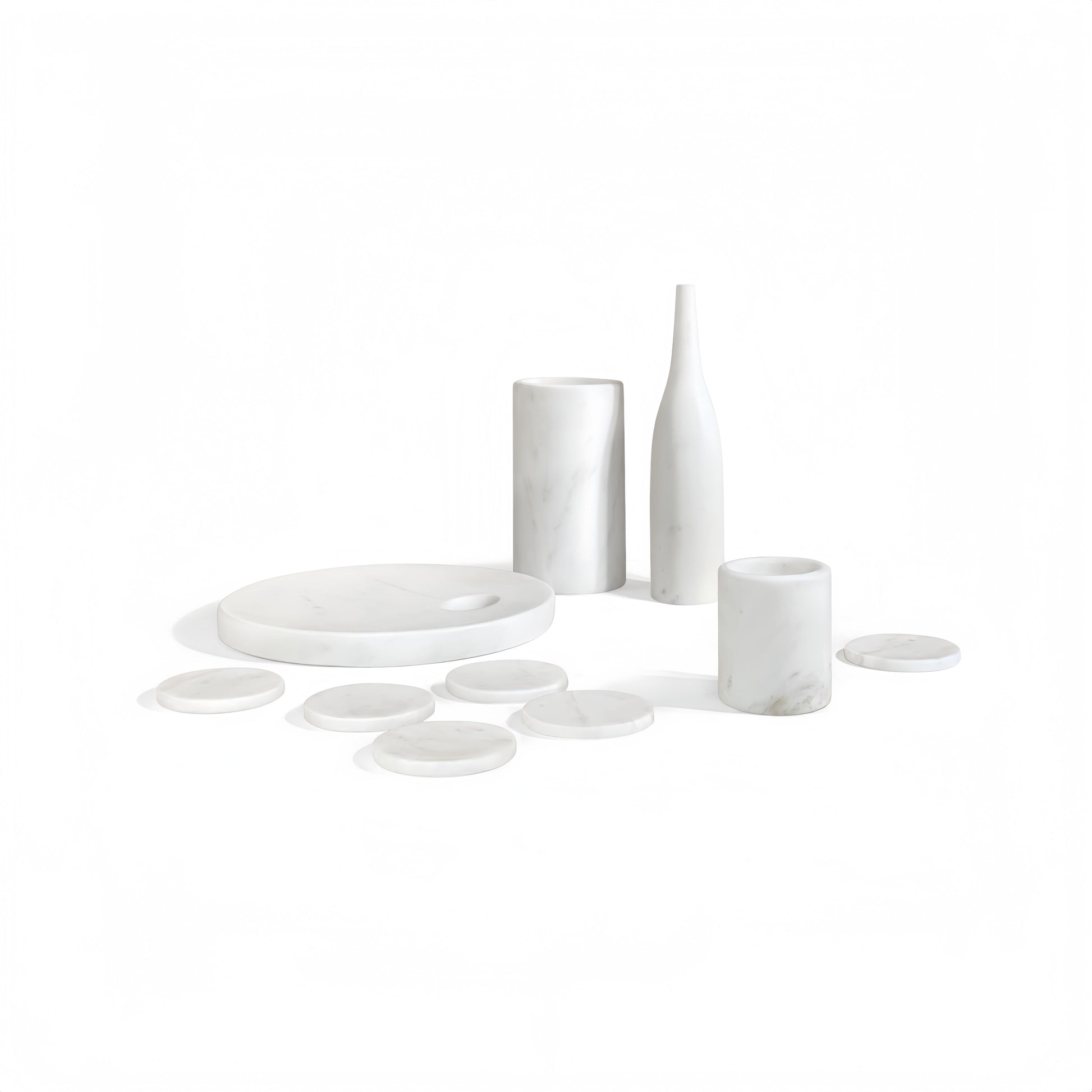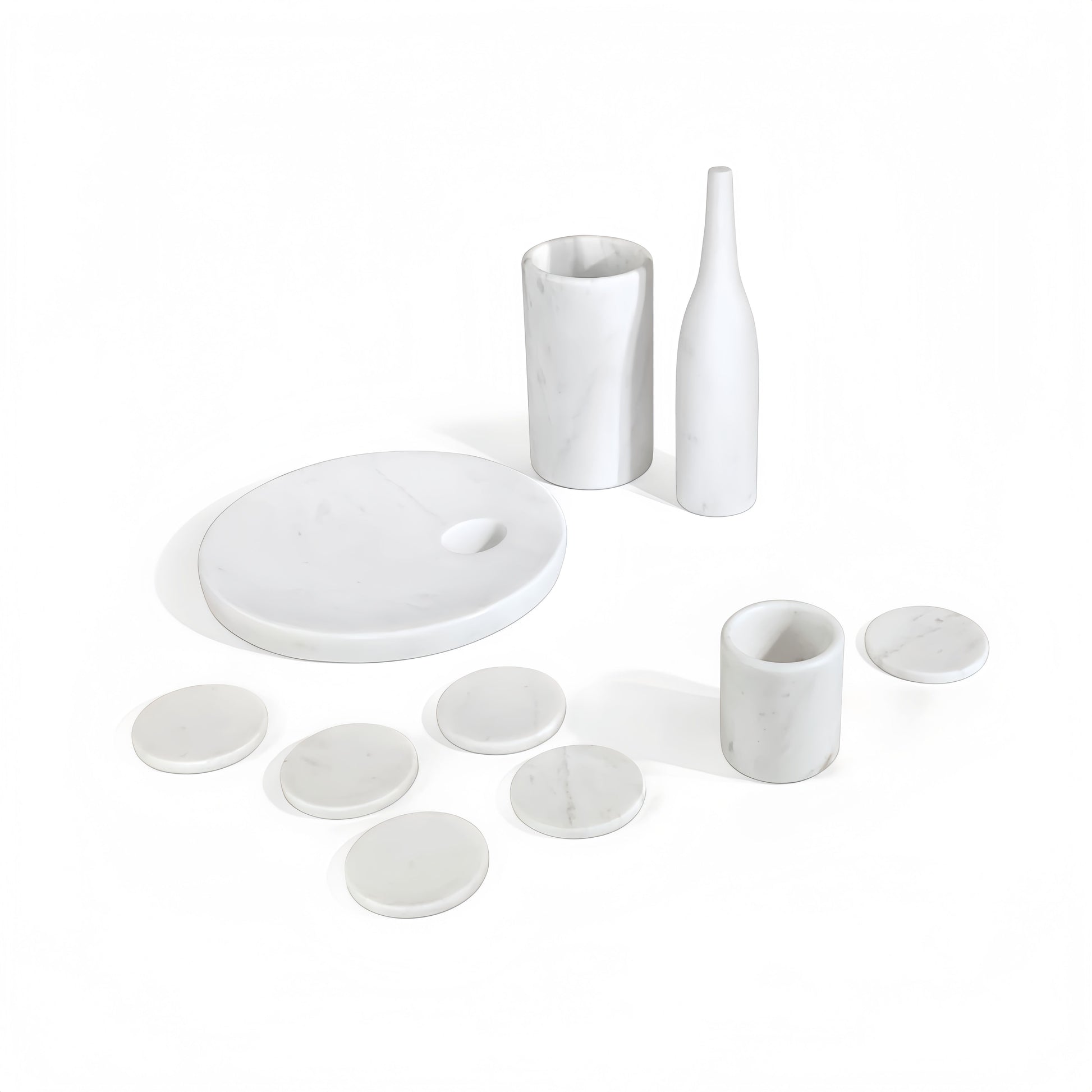 Luxury Natural Marble Dining Room Accessories Set, 10 Pieces, Elegant Natural Stone - White