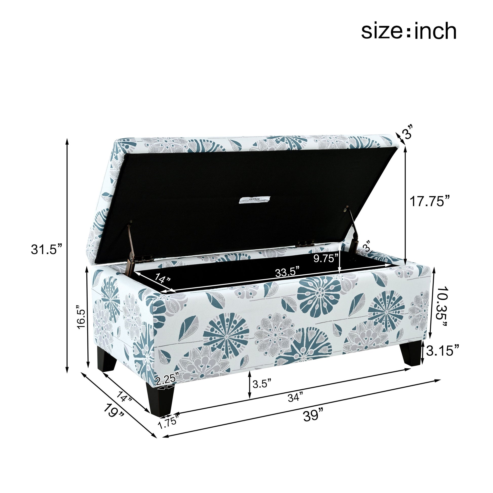 Luxury Storage Ottoman With Floral Patterned Fabric, Soft Close Hinges, Functional Footrest & Seat - Multicolor