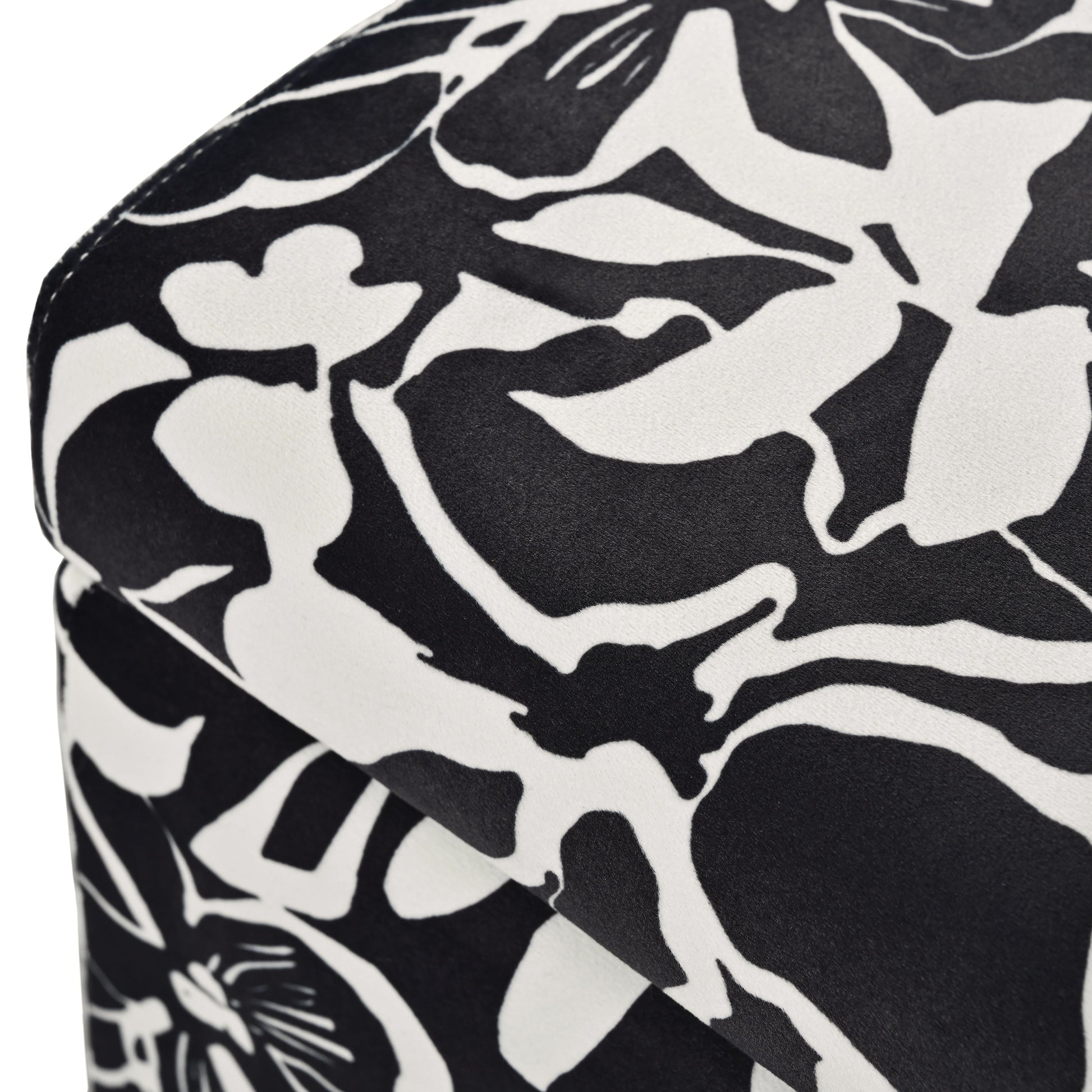 Luxury Storage Ottoman With Floral Patterned Fabric, Soft Close Hinges, Multi Functional Footrest & Seat - Black Floral / White