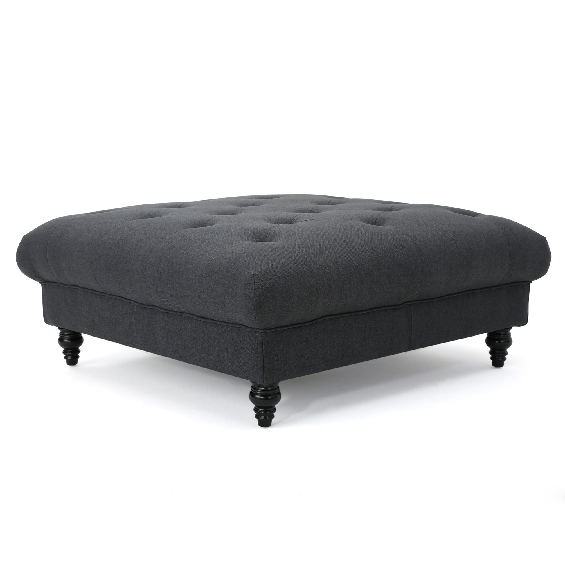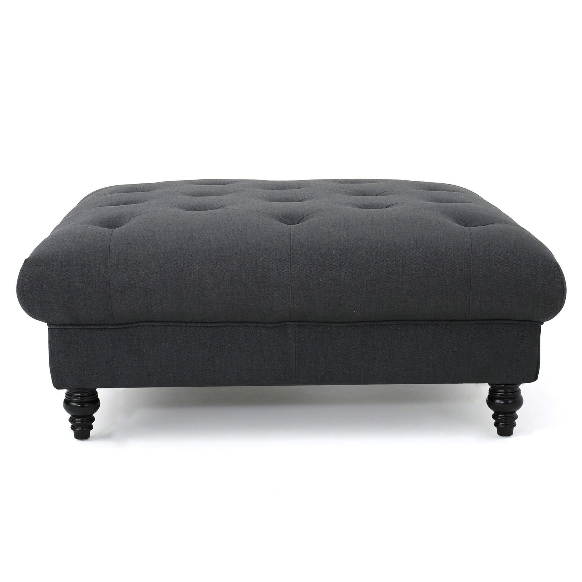 Madrid - Tufted Ottoman With Button Tufting And Turned Feet - Dark Gray