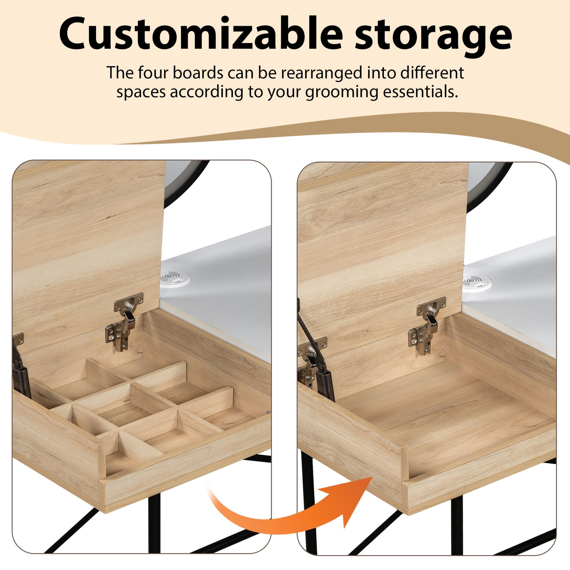 - 3-colors LED Light: Vanity desk with illuminated mirror featuring touch-switch LED lights in warm yellow, warm white, and cool white for versatile indoor lighting.