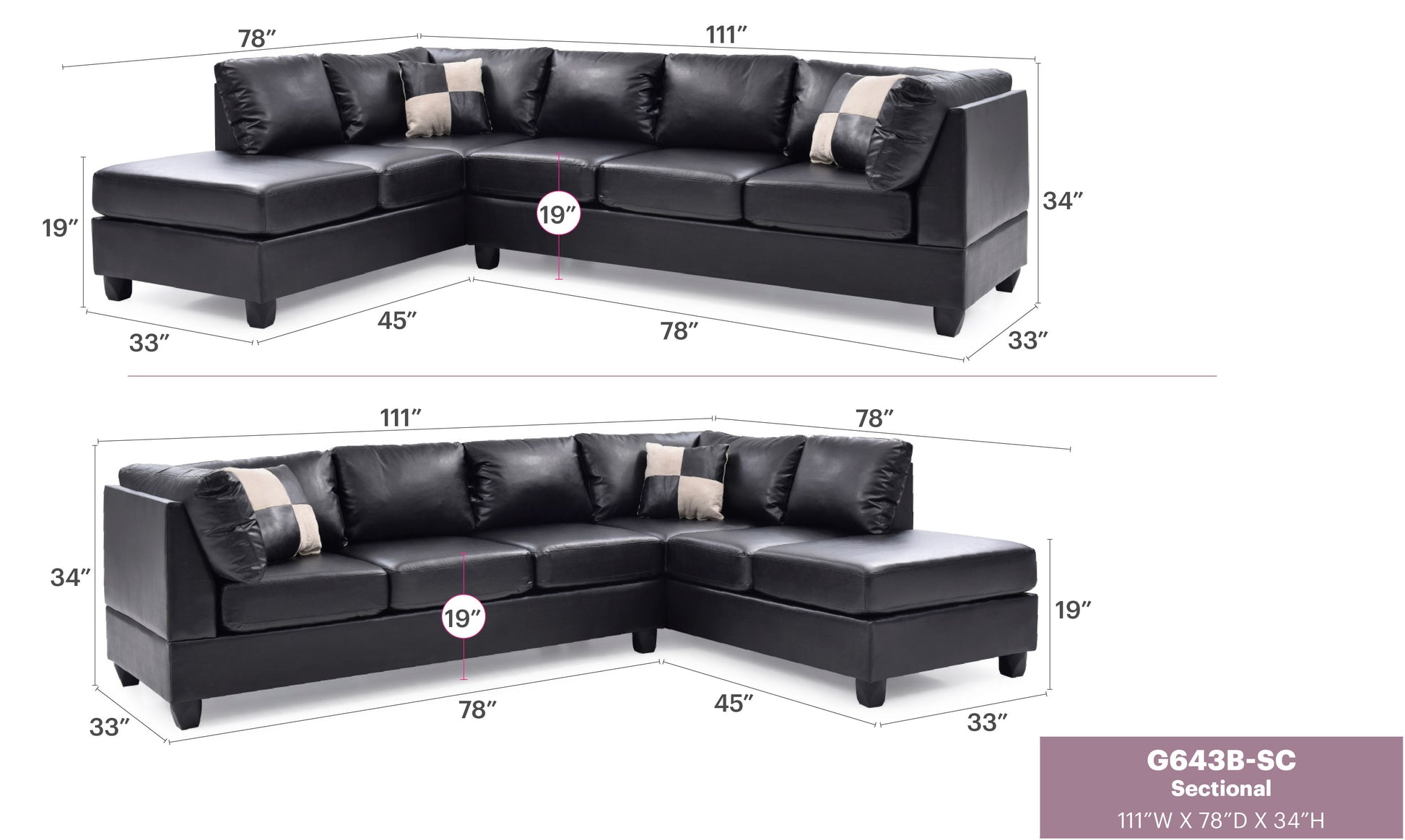 - Flexible Set Up: Set up the sectional with a right or left facing chaise to suit your space.
