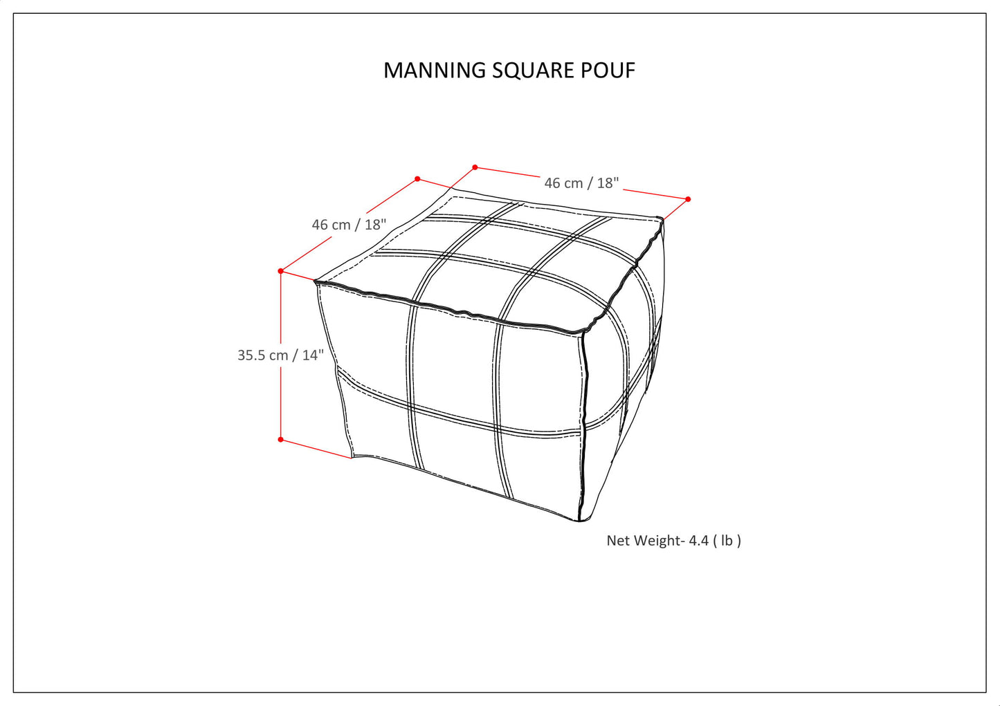 - Dimensions: 18" D x 18" W x 14" H