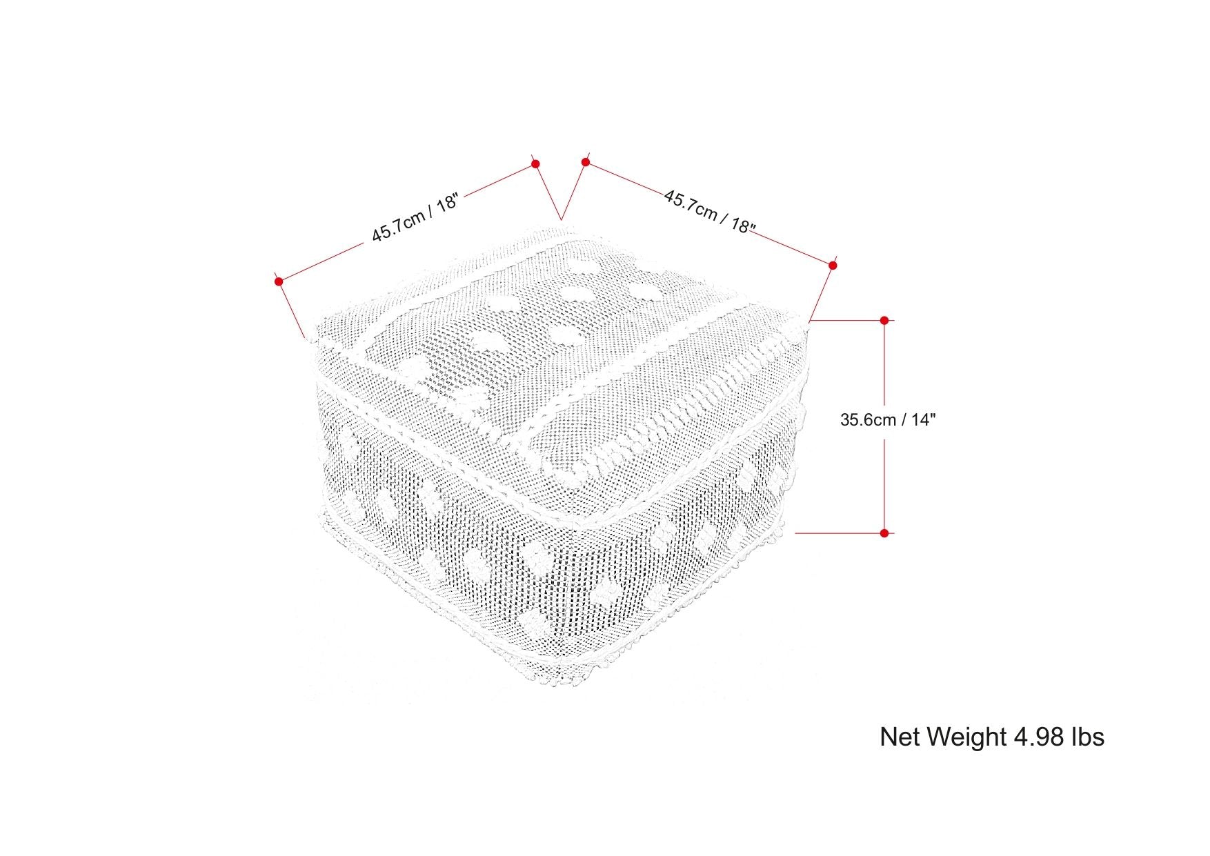 - DIMENSIONS: 18"D x 18" W x 14" H