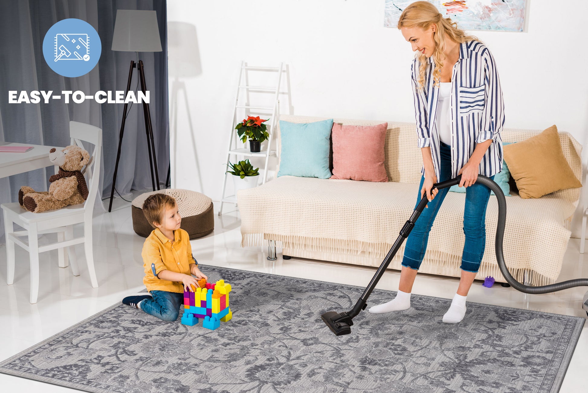 - Easy Maintenance & Durable: Stress-free cleaning includes regular vacuuming and gently blotting out minor stains with a mild detergent or carpet cleaner